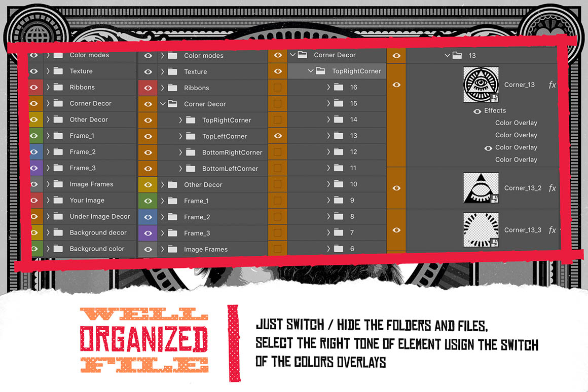 - Fully organized & layered PSD templates for Adobe Photoshop CC or any newer version