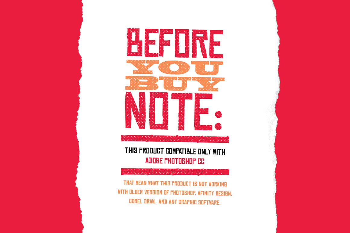 IMPORTANT: BEFORE YOU BUY, NOTE: THIS PRODUCT COMPATIBLE ONLY WITH ADOBE PHOTOSHOP CC. This product isn’t working in any older version of photoshop, affinity design, corral draw and other graphic software!