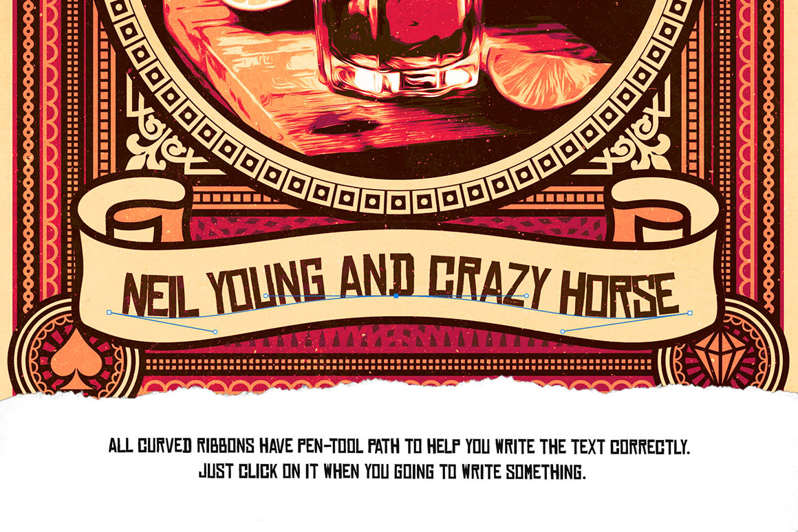 - All curved ribbons have pen-tool path to help you write the text correctly.