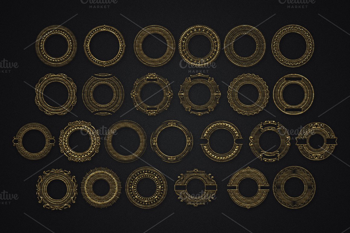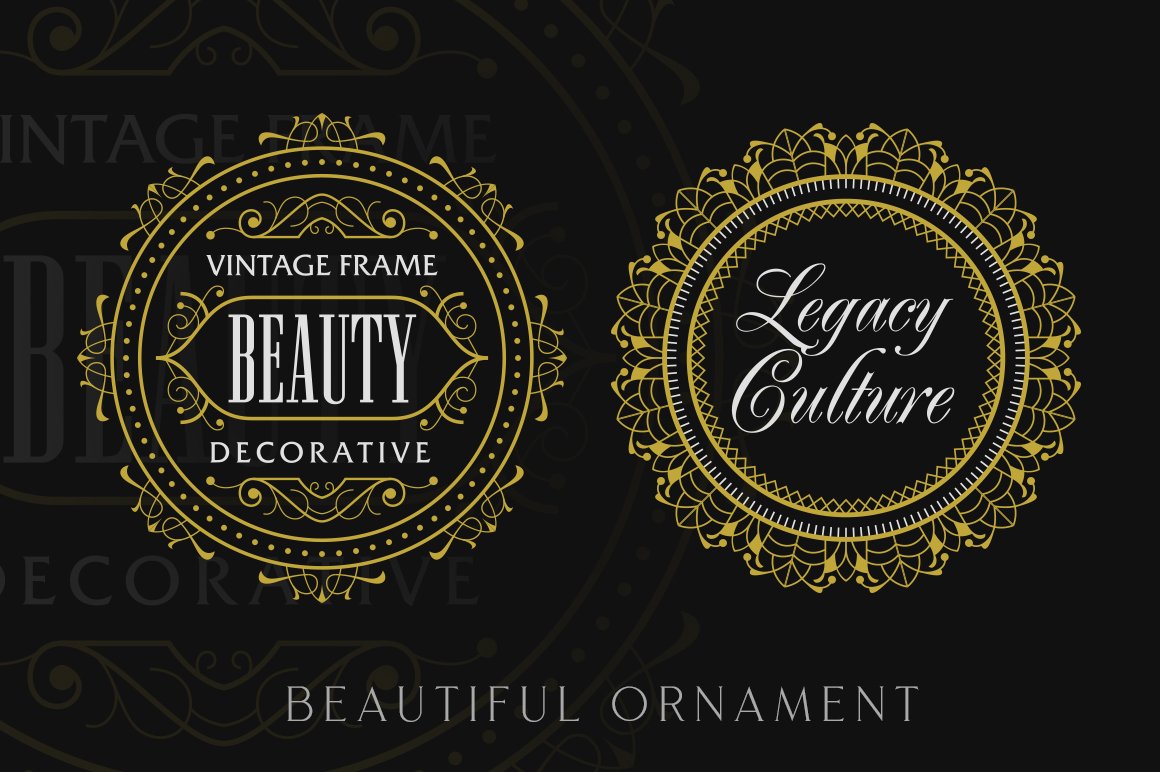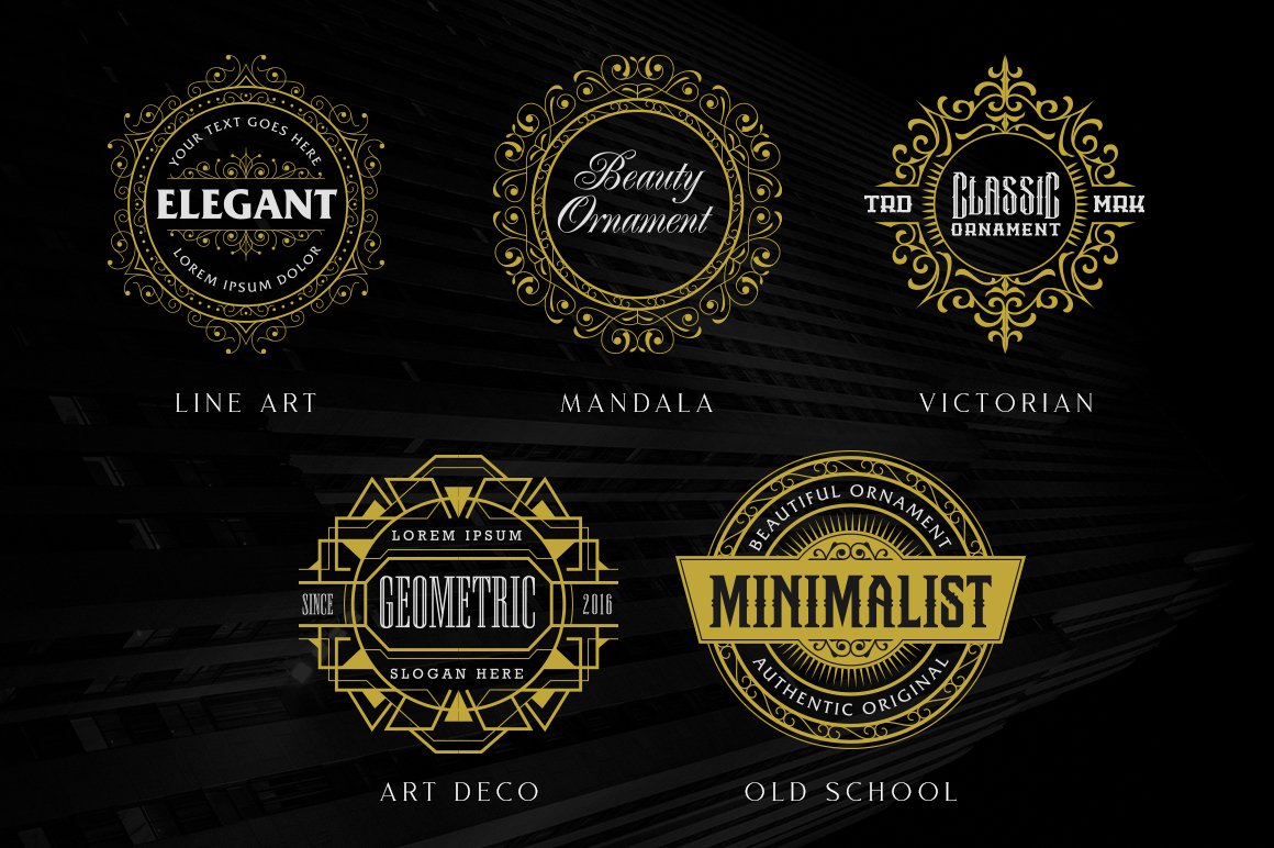 Circular Ornamental Badges. A pack of ornaments based on the circle shapes. Multiple format files with many variations that you can use in vintage designs. Inspired by some art & design era from the past and mixed with modern style. Luxury & elegant! There are Line Art, Mandala, Art Deco, Victorian and Old School style. Designed with a sense of minimalism that keeps sustainability with the present design style. You can use this pack of ornament template for logo, storefront, backdrop, invitation, or print design such as t-shirt, poster, card, billboard, and sticker. High resolution and easily customizable with your own fonts collection