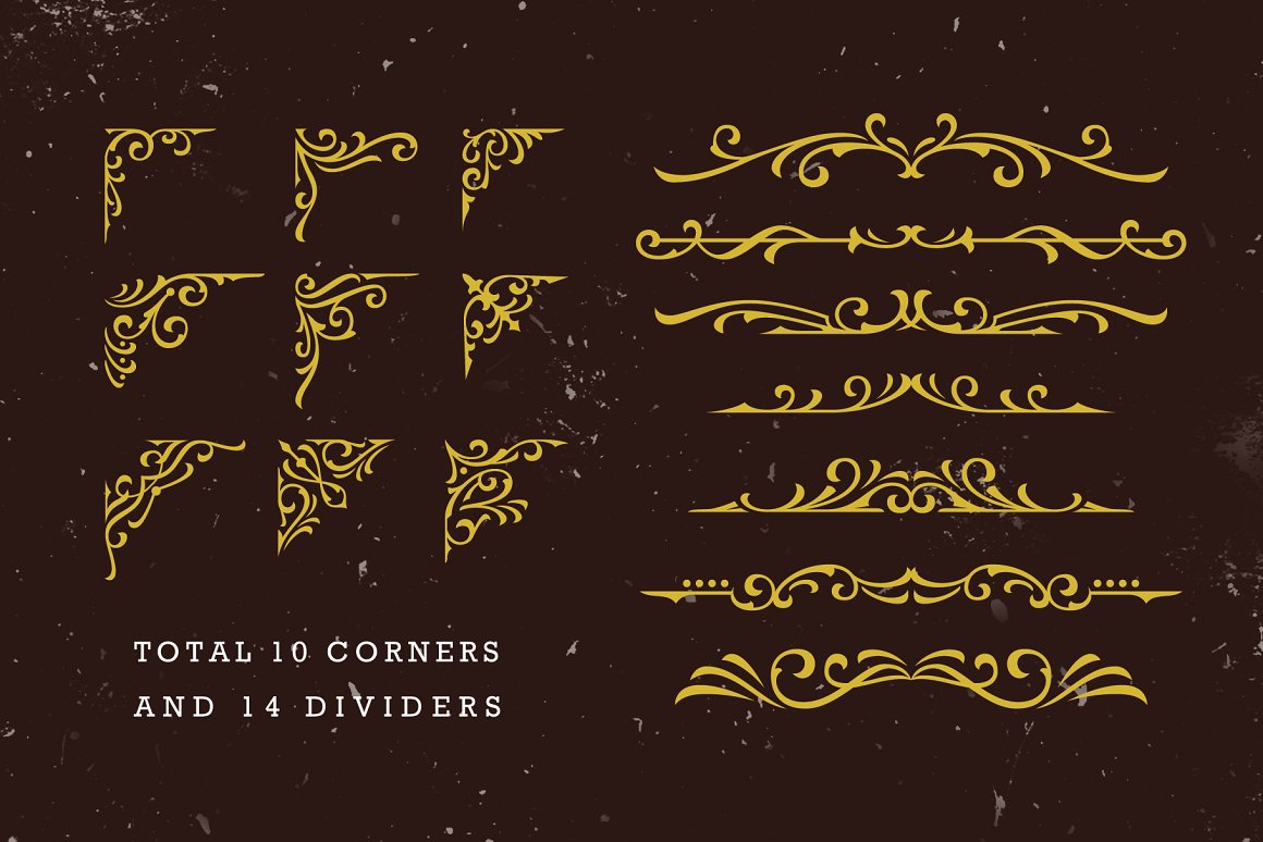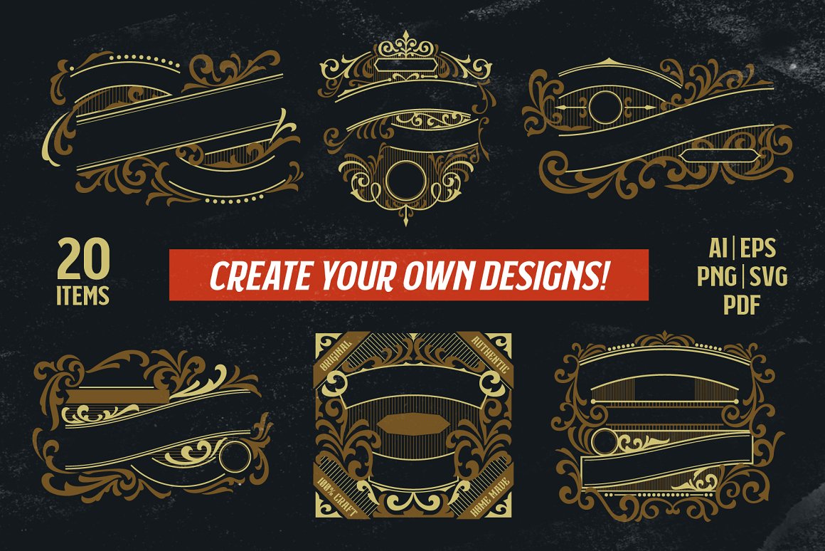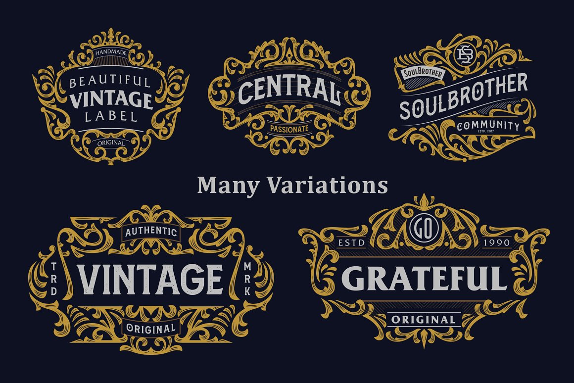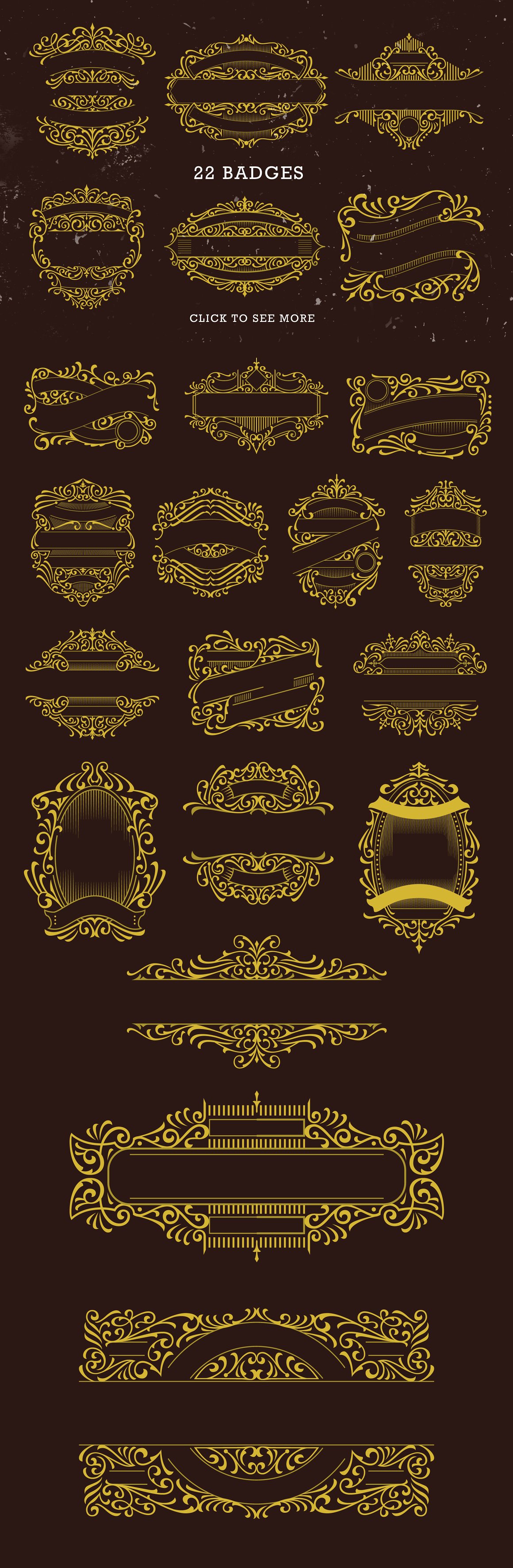 Containing *22 label badge vectors. with many variations that you can apply to your design according to your concepts. Looks good for vintage style, complex design, natural style, and craft. Very recommended for your poster design, label, banner headline, merchandise, t-shirt, storefront, logo and etc. Easy editable text using warp or slant features in design software and change the color easily with multiple formats. Also complete with 14 dividers and 10 corner ornaments for invitation, card, certificate, books or banner.