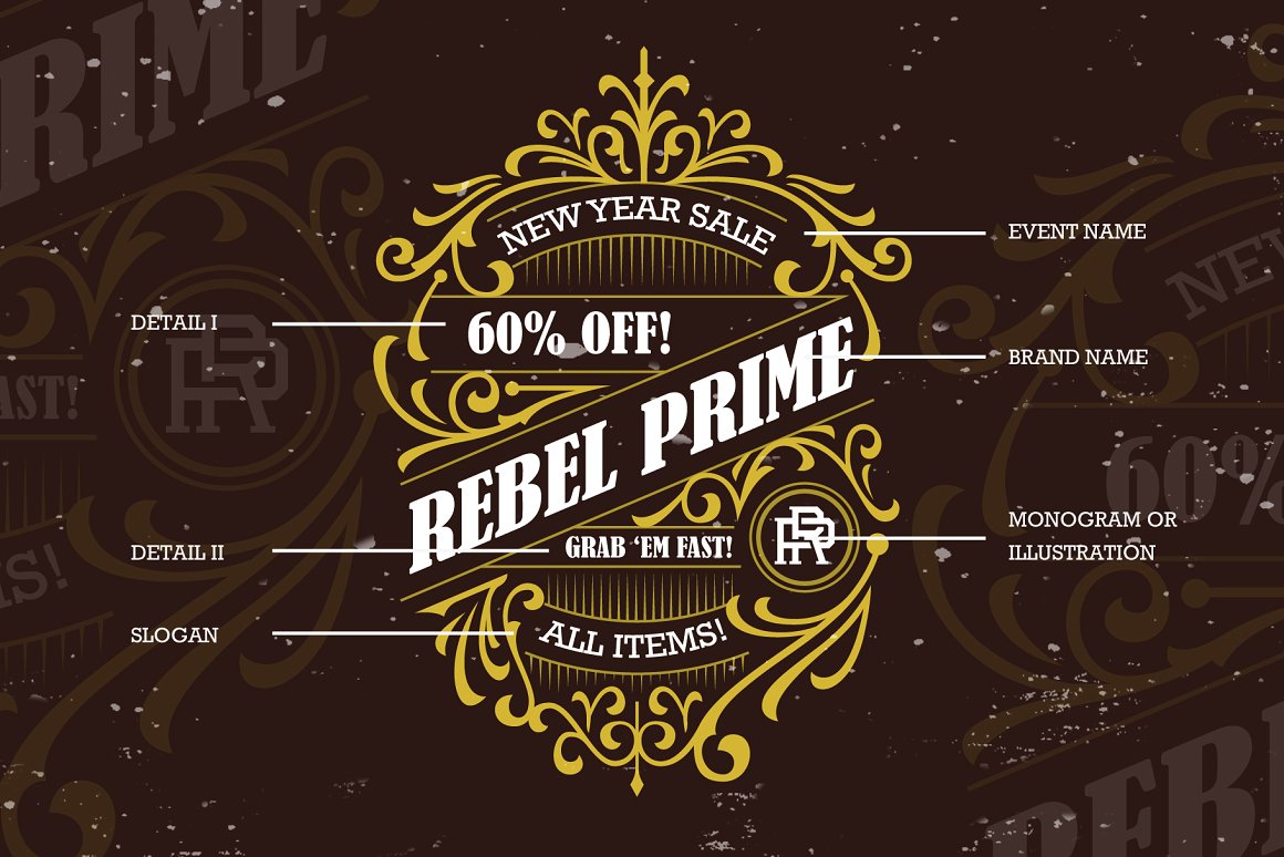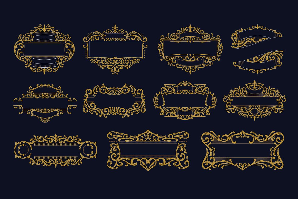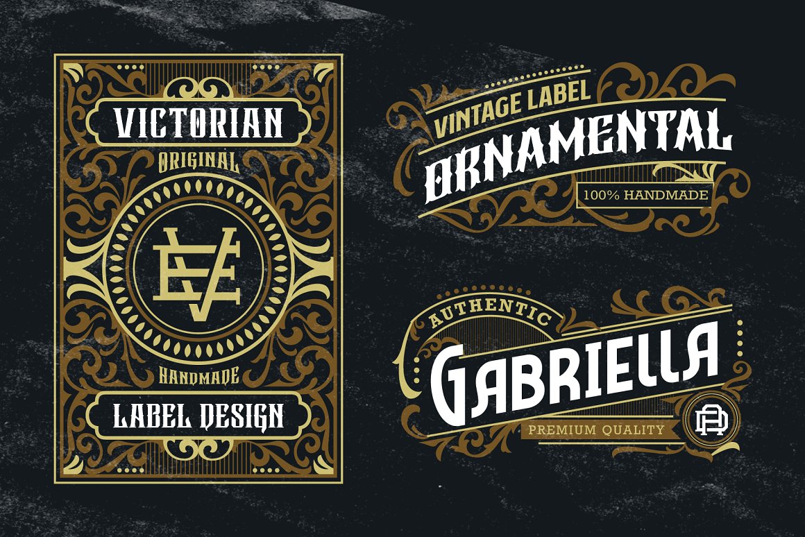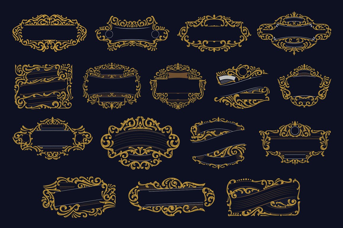 Introducing Victorian Ornaments Vector ; Label, badges & frames. The set of ornamental object that inspired from art nouveau and victorian style. Carefully crafted in medium details that gives traditional-modern looks. This set included 20 ornament design that very recommended for your vintage label design, logo badges, frame for photo, store front, banner, logotype, clothing design, event poster. In vector format, you can simply edit, recolor the artwork, customize the text and make your own design!