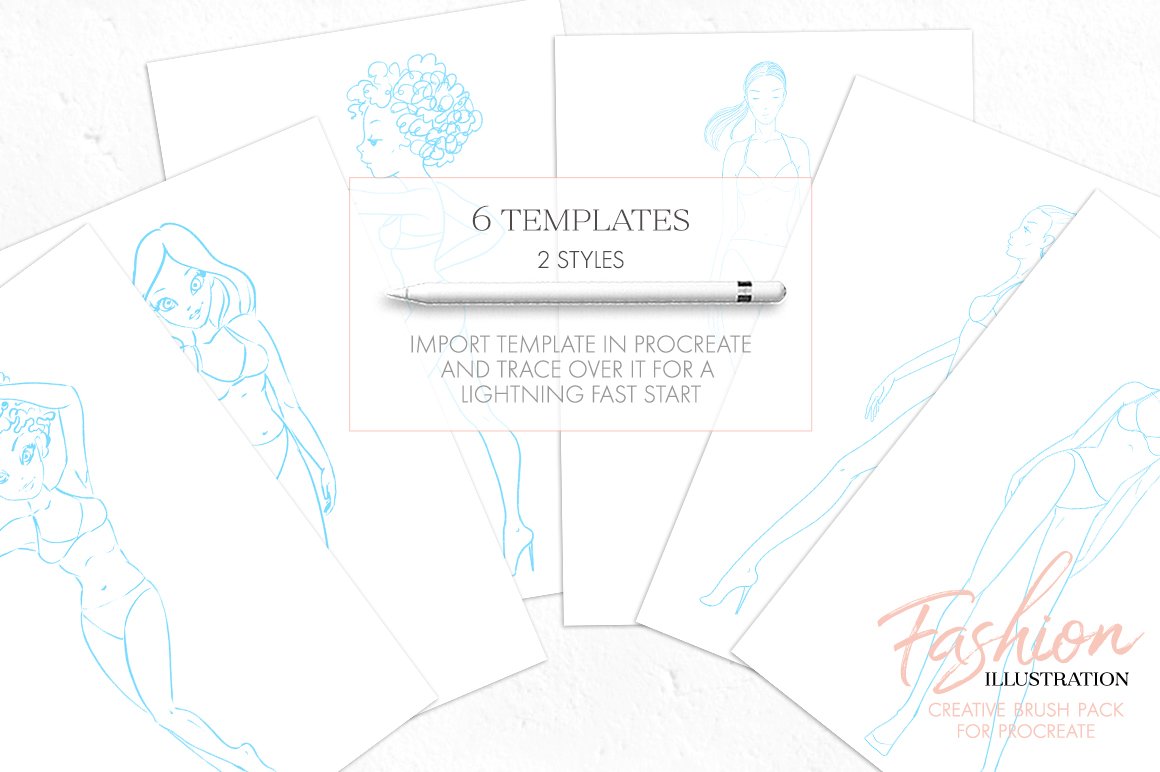 Included in this set are 43 brushes for use with Procreate app, a set of 6 templates of female models to trace or use as reference for a quick start, a PDF Brush Guide and a PDF User Guide.