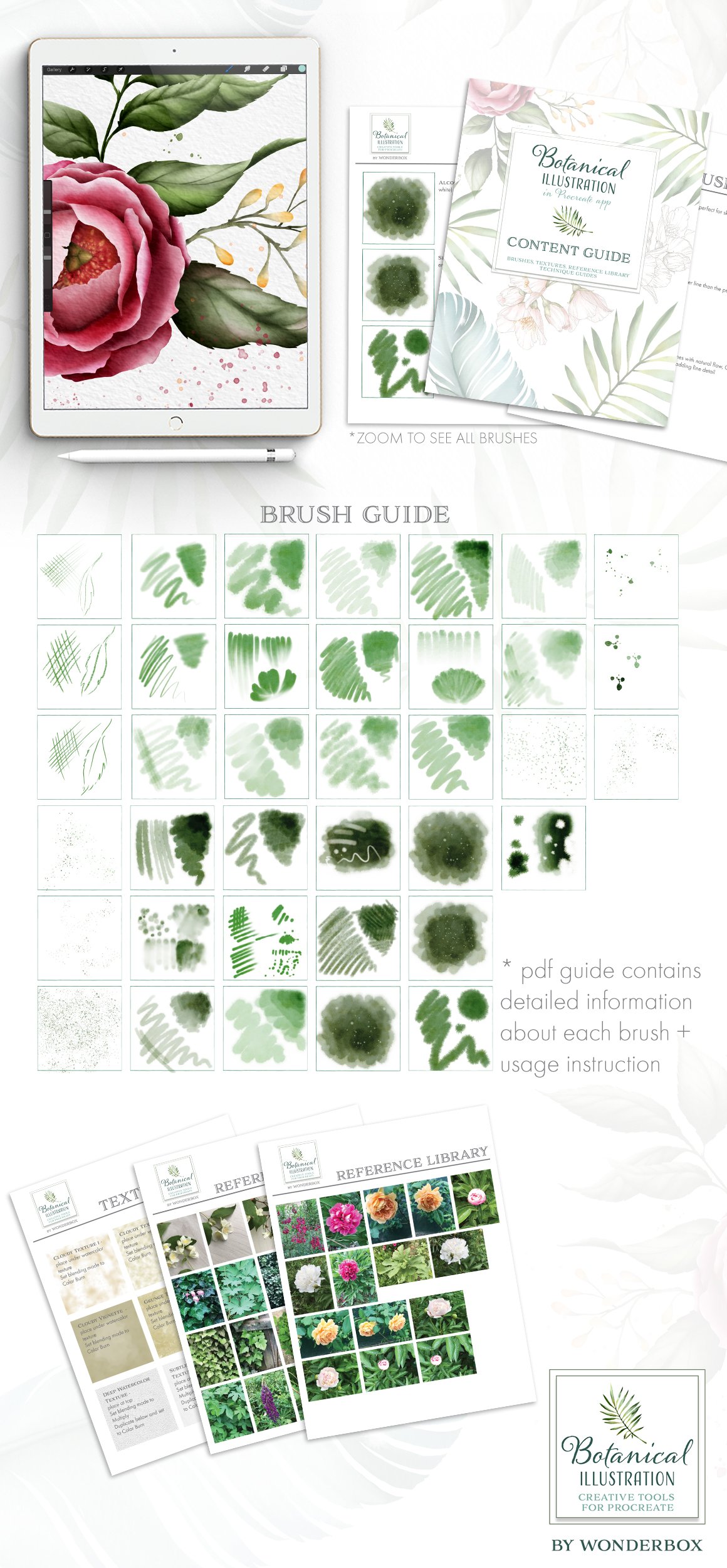 - PDF Content guide with valuable info on each brush and texture + quick view of reference photos