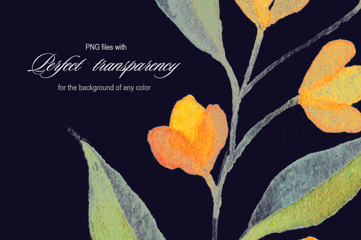 My goal was to create watercolor drawings in high quality with unique transparency. The level of processing allows illustrations to look great on a dark and light background, as if they were really painted on the background of the chosen color.