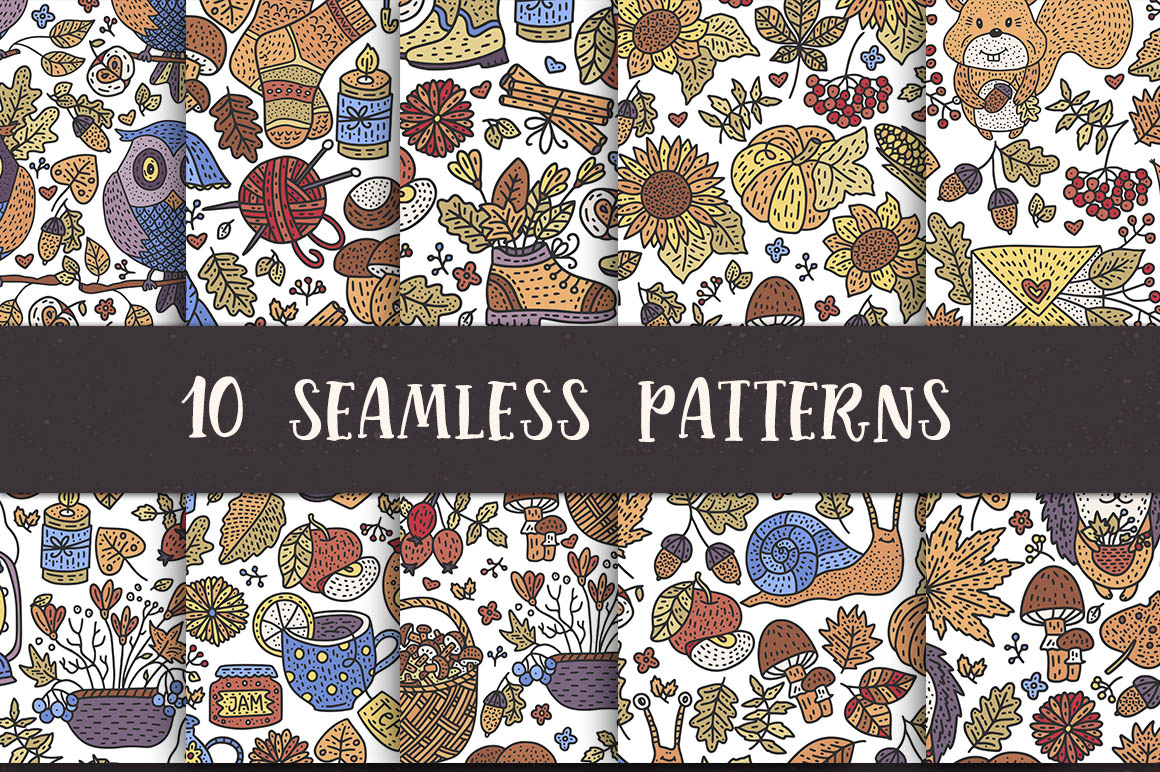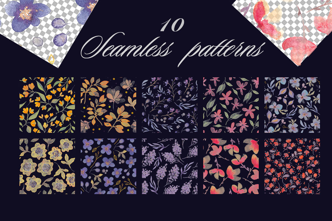 - 10 seamless patterns (separately on 10 files JPG, 10 files PNG on transparent background);