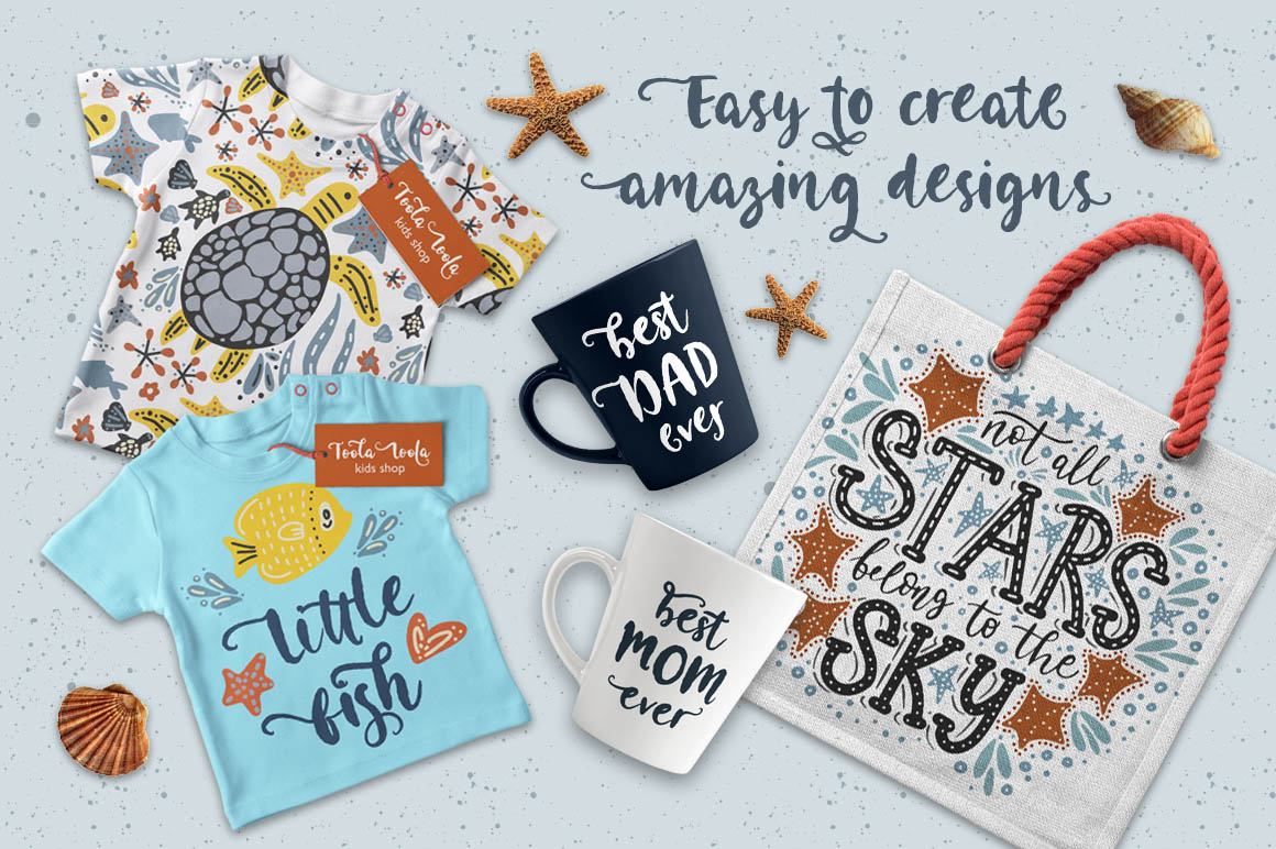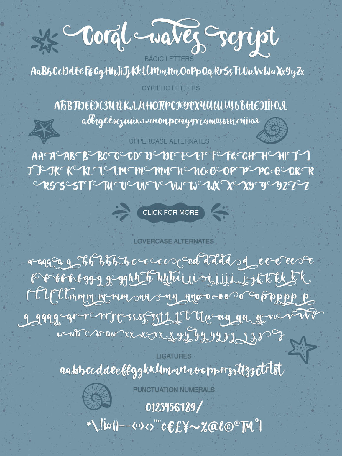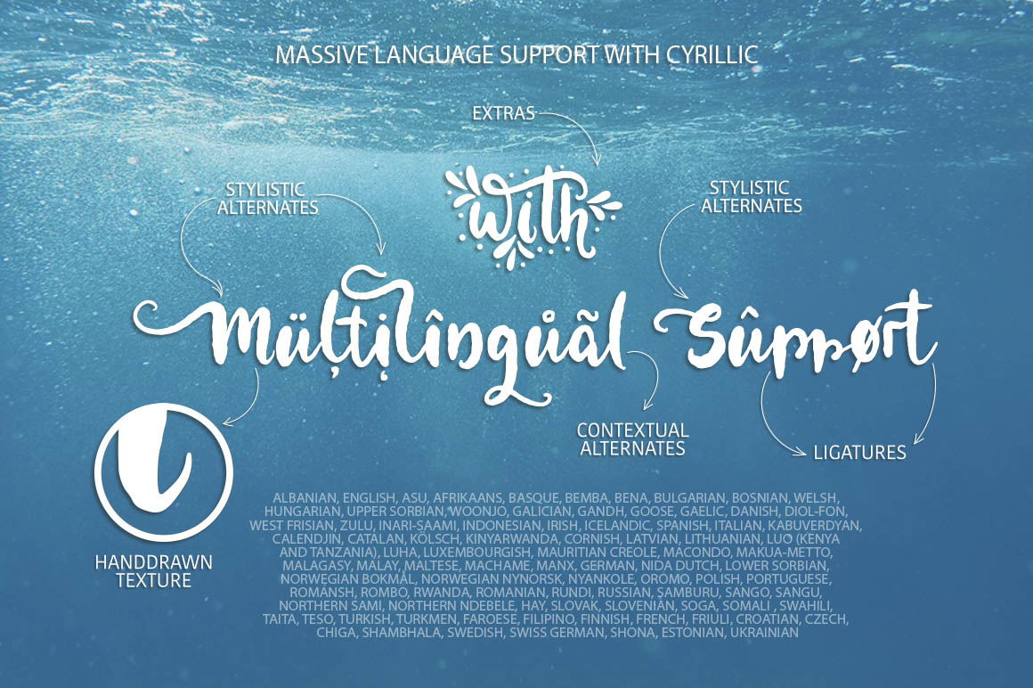 - Coral Waves extra font – with 52 extras with sea decor, separate words and swashes;