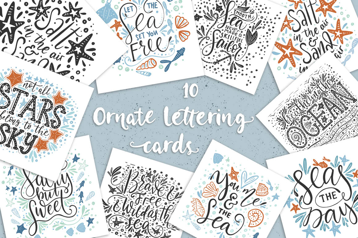 - 10 lettering sea cards (all in color & black EPS, JPG, PNG also in white);