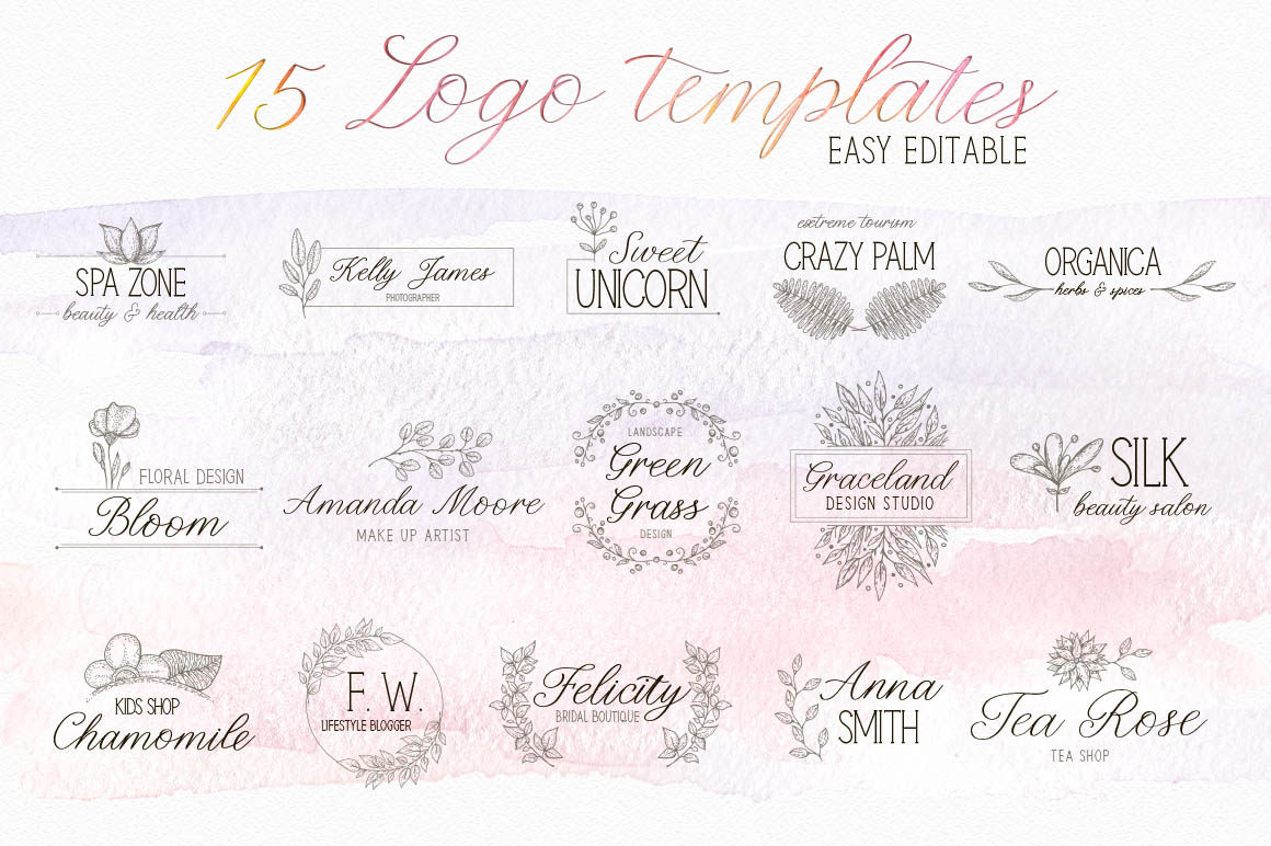 - 15 handdrawn logo templates in different formats.