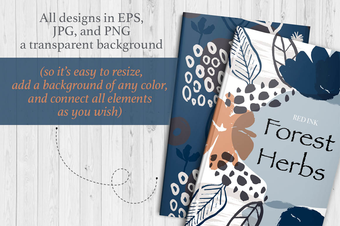 ‘Forest herbs’ is a big collection of floral and abstract elements, seamless patterns and cards, which were drawn with brush and ink & then carefully digitized.