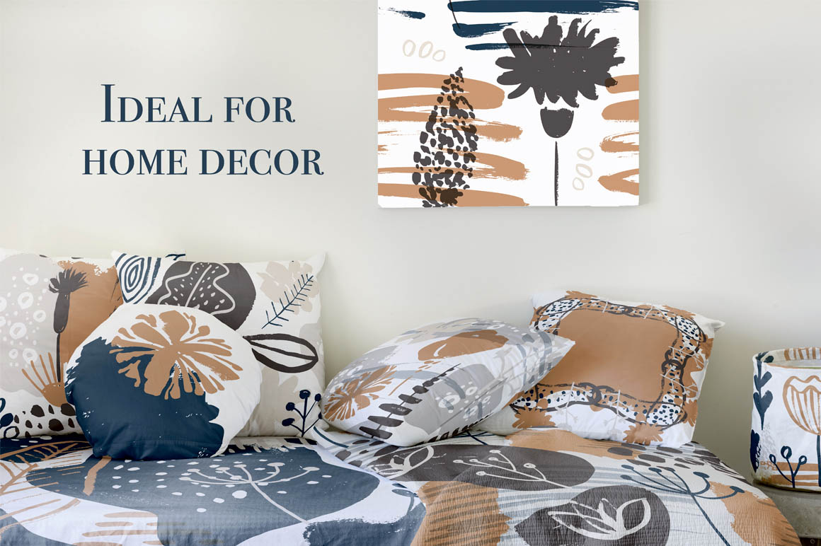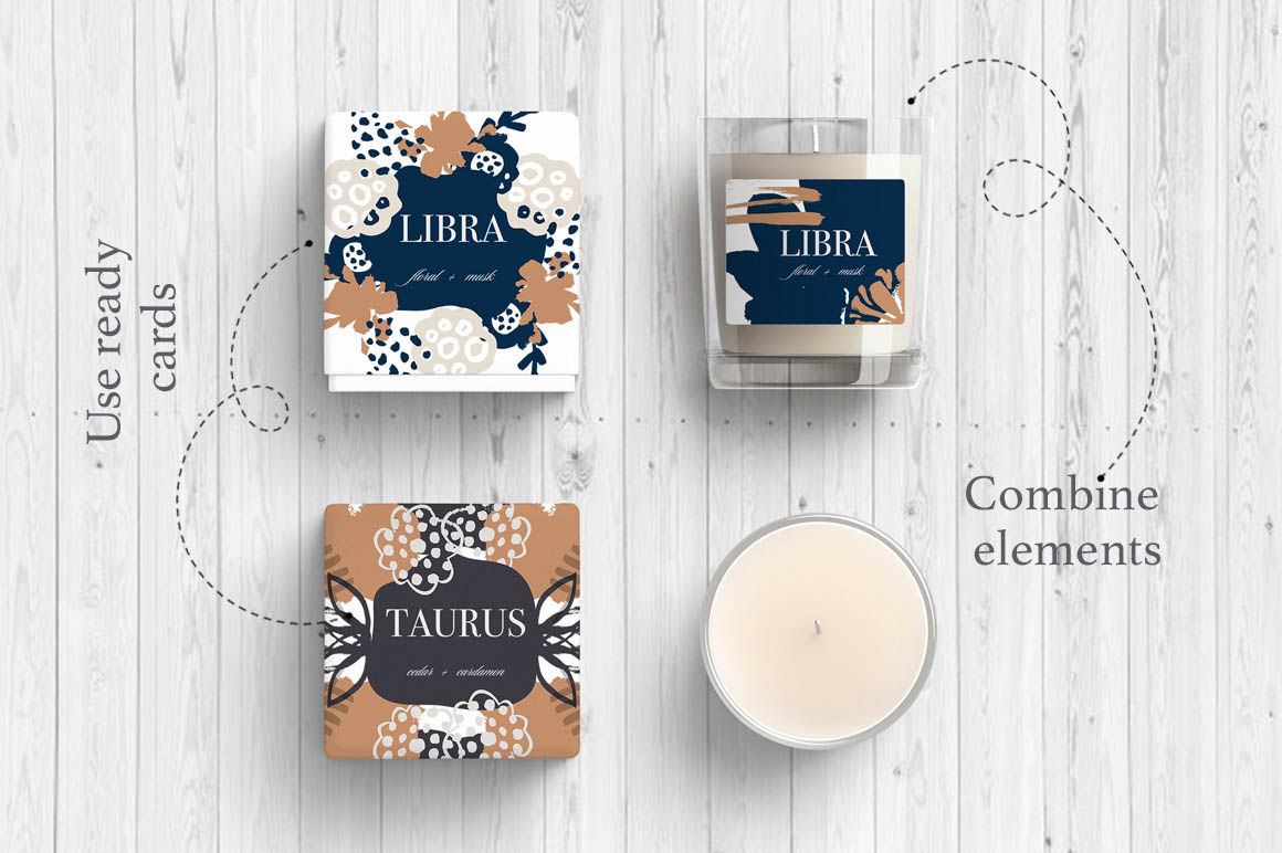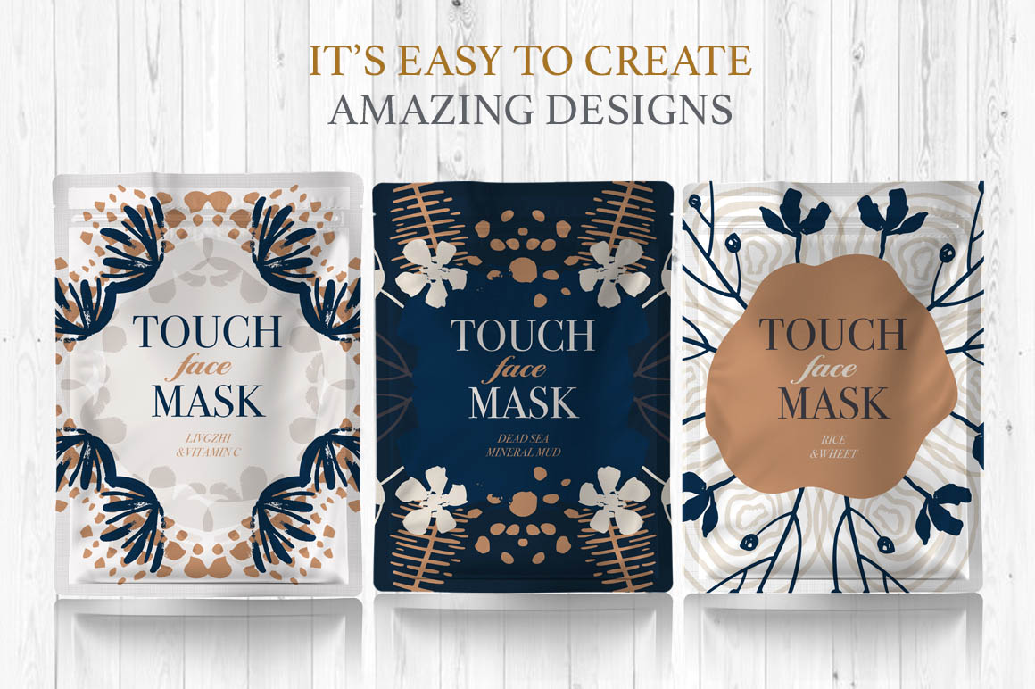 You can use seamless designs and separate art pieces, use frames and textures, mix & match individual floral and abstract elements to create unique designs. Possibilities are endless!