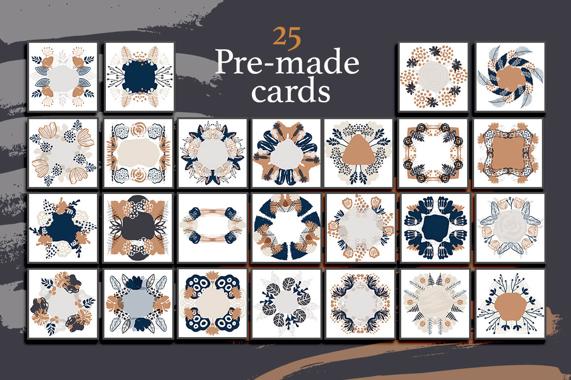 - 25 pre-made cards (separately on 25 files EPS10, 25 files JPG, 25 files PNG on transparent background)