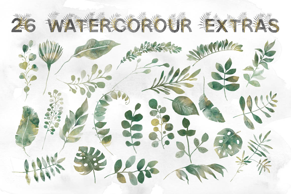 - 26 watercolor extra files (PNG on a transparent background),