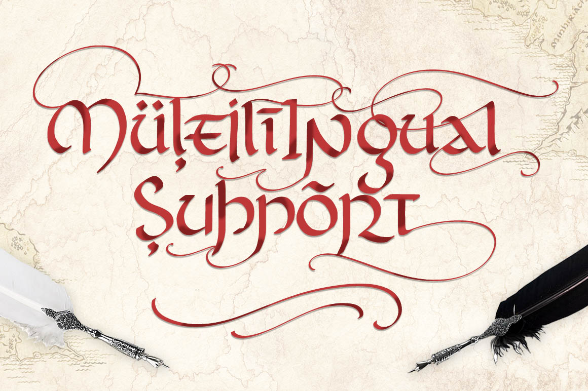 Rivendell is a symbiosis of many styles of writing – Uncial, Caroline minuscule and others. It’s a beautiful blackletter font with lots of OTF, which comes with 260 alternate letters to create real typography magic.