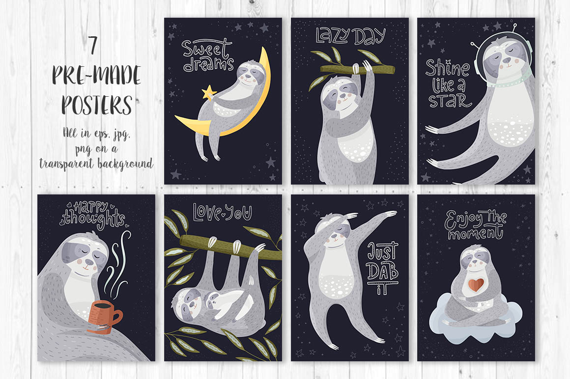 01. Sloth Adventures – Big graphic set from RedInk