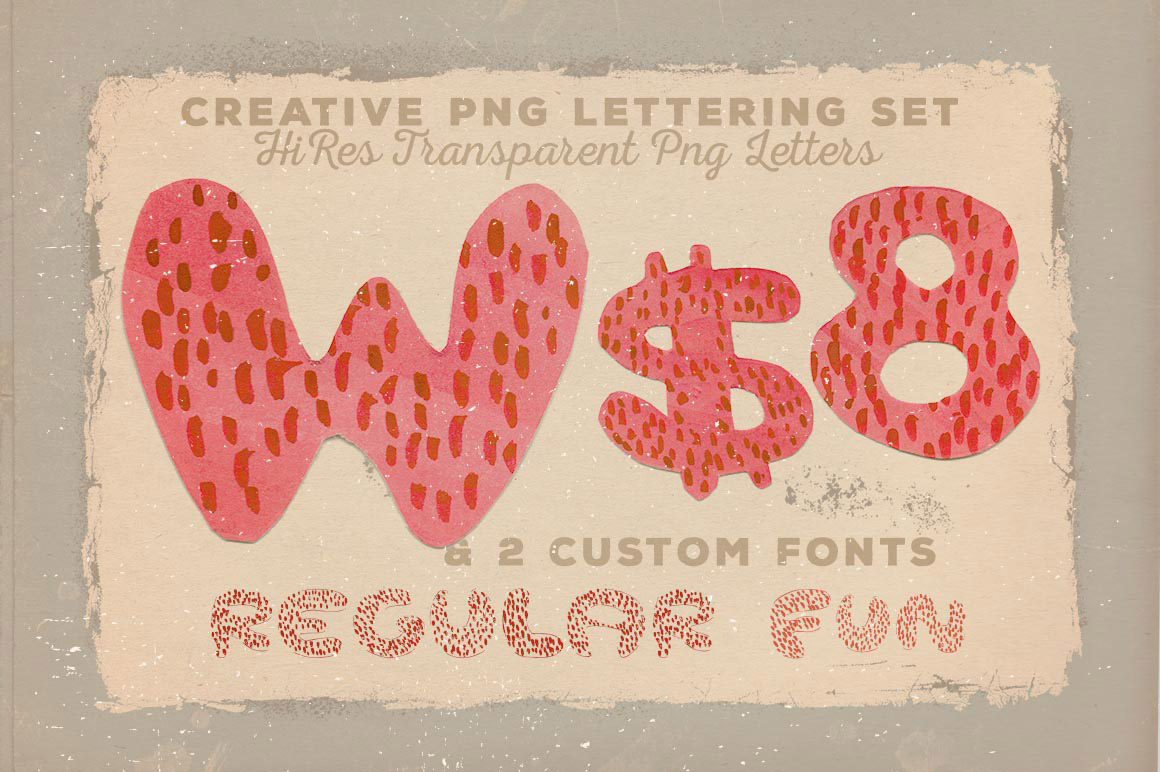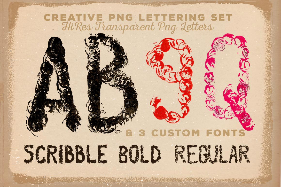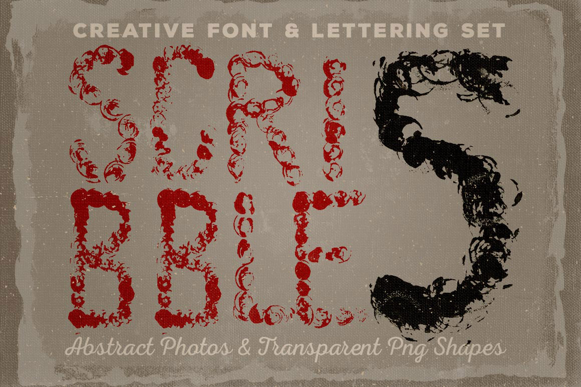 - 11 creative lettering sets, 24 font files, 290 PNG graphics & 272 abstract photos