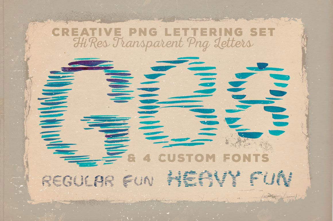 11 artistic PNG lettering sets, PNG graphics & abstarct photos: