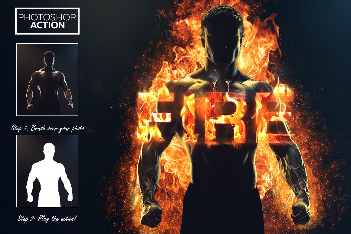 Fire Photoshop Effect is a Photoshop action that will add professional fire effects to your photos. Create a fire effect the easy way! The action works on an area of the image you define by brushing. The result is multiple layers with advanced customization possibilities: blending modes, adjustment layers and layer masks. The source image should be around 2500-3500 pixels on the long edge. After the result is produced, with one click, the flames can be instantly regenerated and added to composition.