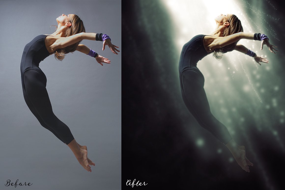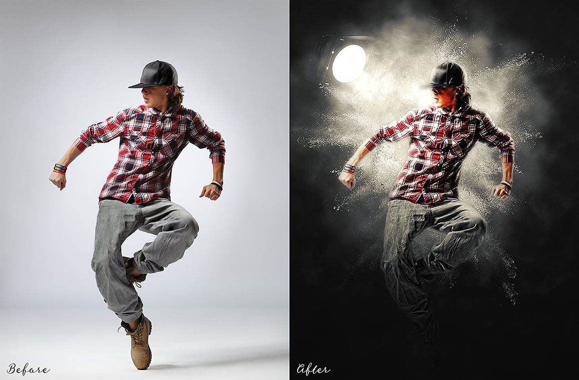 Create awesome light effects with your photos that blends and interacts with your subject! With Light Effect – Photoshop Action and Light Brushes you can to create the light source where you want and colorize it. The action works on an area of the image you define by brushing. The result is multiple layers with advanced customization possibilities: blending modes, adjustment layers and layer masks. The source image should be around 3000-3500 pixels on the long edge. After the result is produced, with one click, the flames can be instantly regenerated and added to composition.