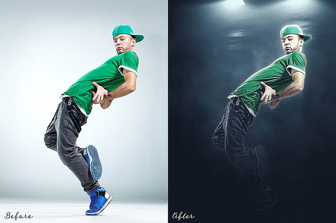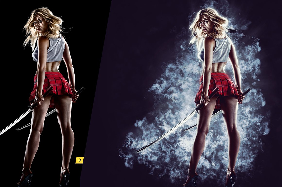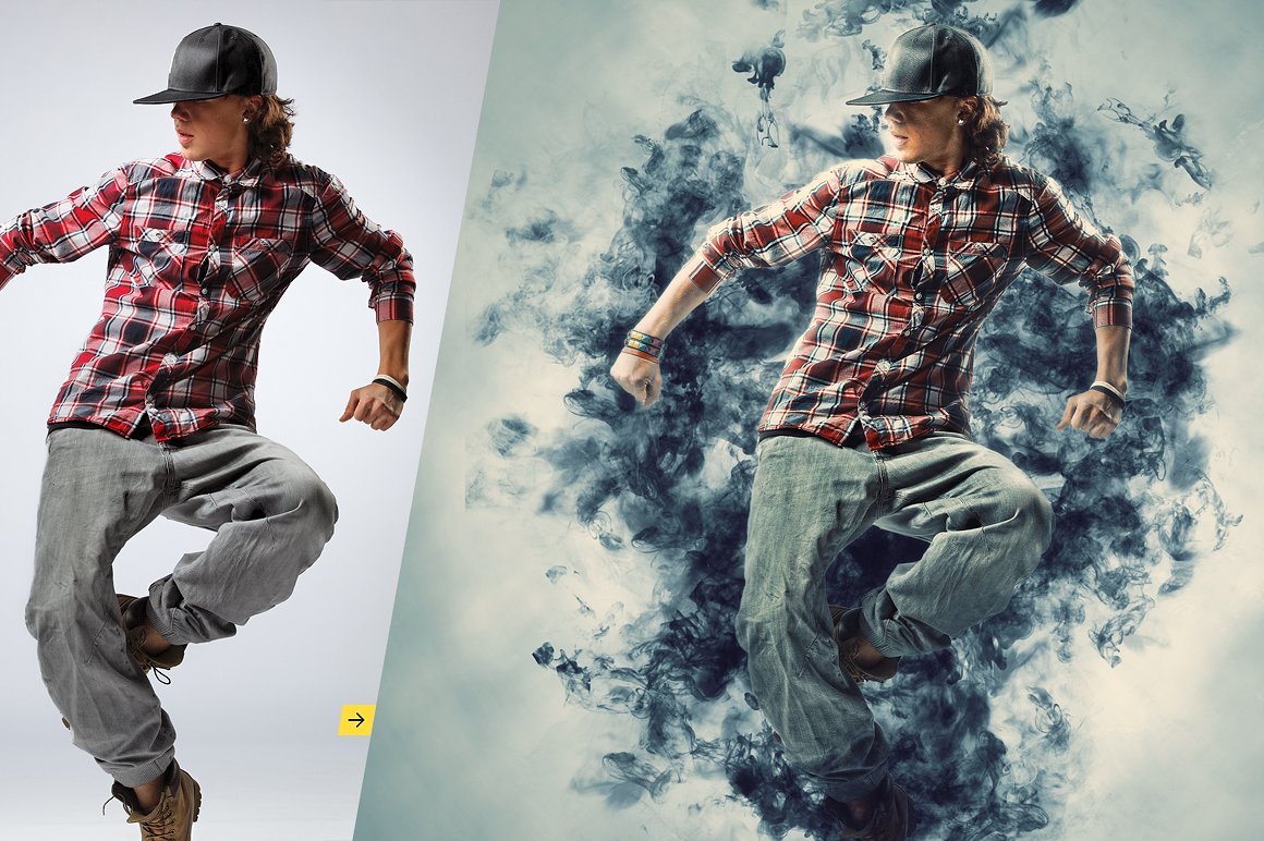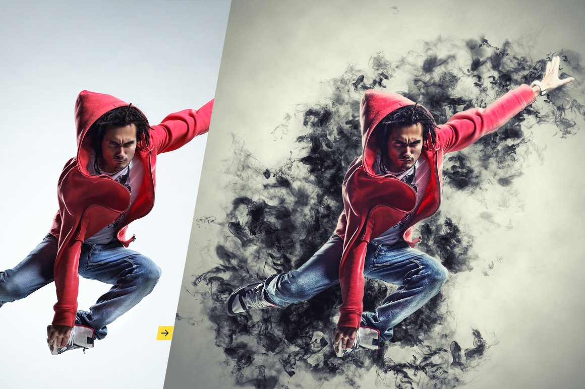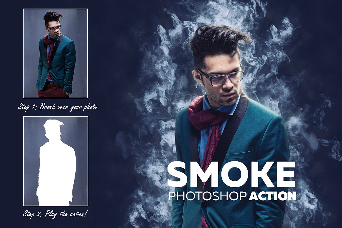 Smoke Photoshop Effect is a Photoshop action that will add professional smoke effects to your photos. Create a smoke effect the easy way! The action works on an area of the image you define by brushing. The result is multiple layers with advanced customization possibilities: blending modes, adjustment layers and layer masks. You have lots of layer control after the action has finished to adjust the design how you wish.
