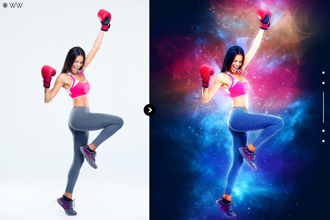 Go from Photoshop beginner to pro with little effort! Create an intense space effect around your subject! What usually can take hours to create can now be done with a few clicks. You have lots of layer control after the action has finished to adjust the design how you wish. The action has been tested and working on Photoshop CS4, CS5, CS6, CC, CC+. Tips & Support: For the best results, it is recommended to use high resolution photos in the range of 2000px – 5000px. The optimal range is from 3000px – 3500px. The detail and clarity in the effects generated by the actions reduce the smaller your photo is.