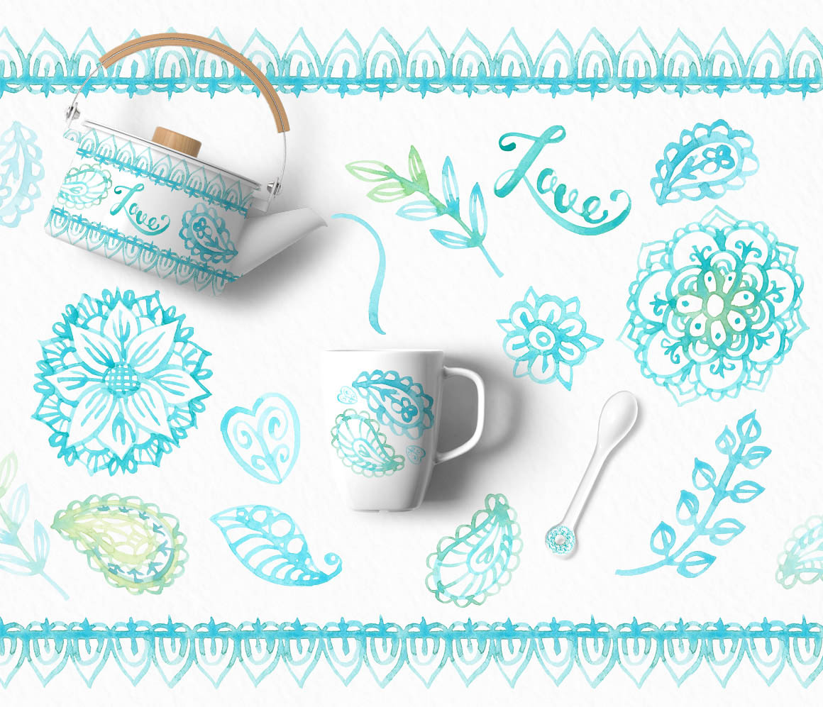 - 9 fancy & decorative watercolor illustration bundles in one!