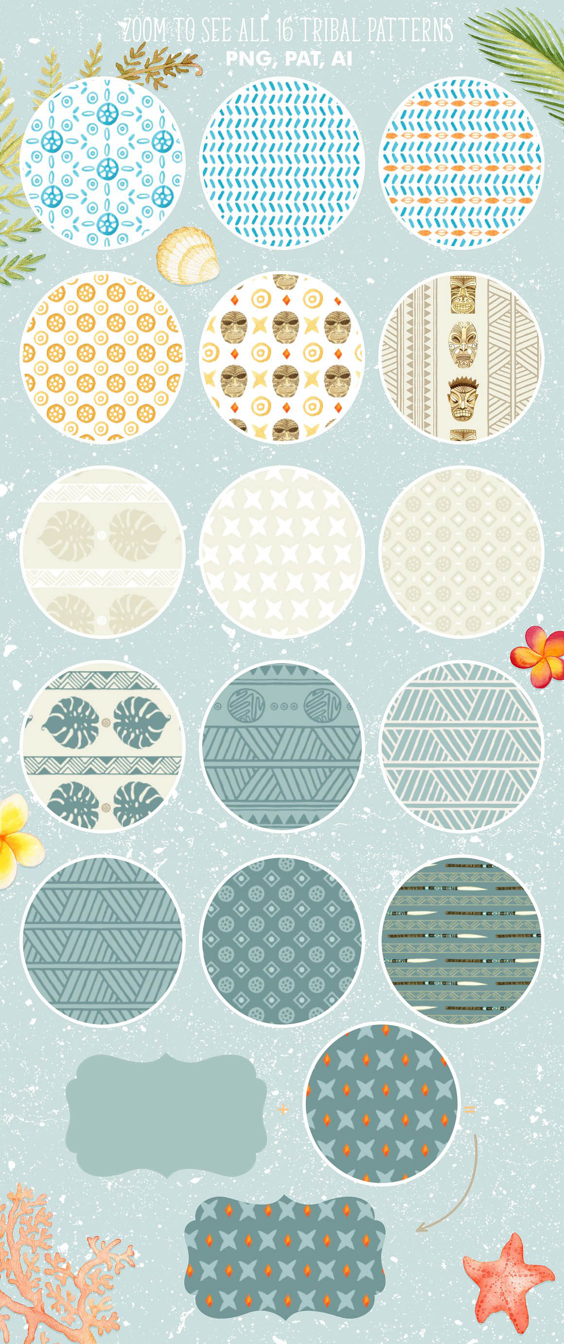 - 16 tribal patterns 12x12in / 30×30 cm, PNG, Photoshop PAT library tested to be working with Photoshop CS3 and higher (created in PS CC) and Photoshop Elements 6 and up; Illustrator swatch library compatible only with Illustrator CC. Master tiles JPGs included.