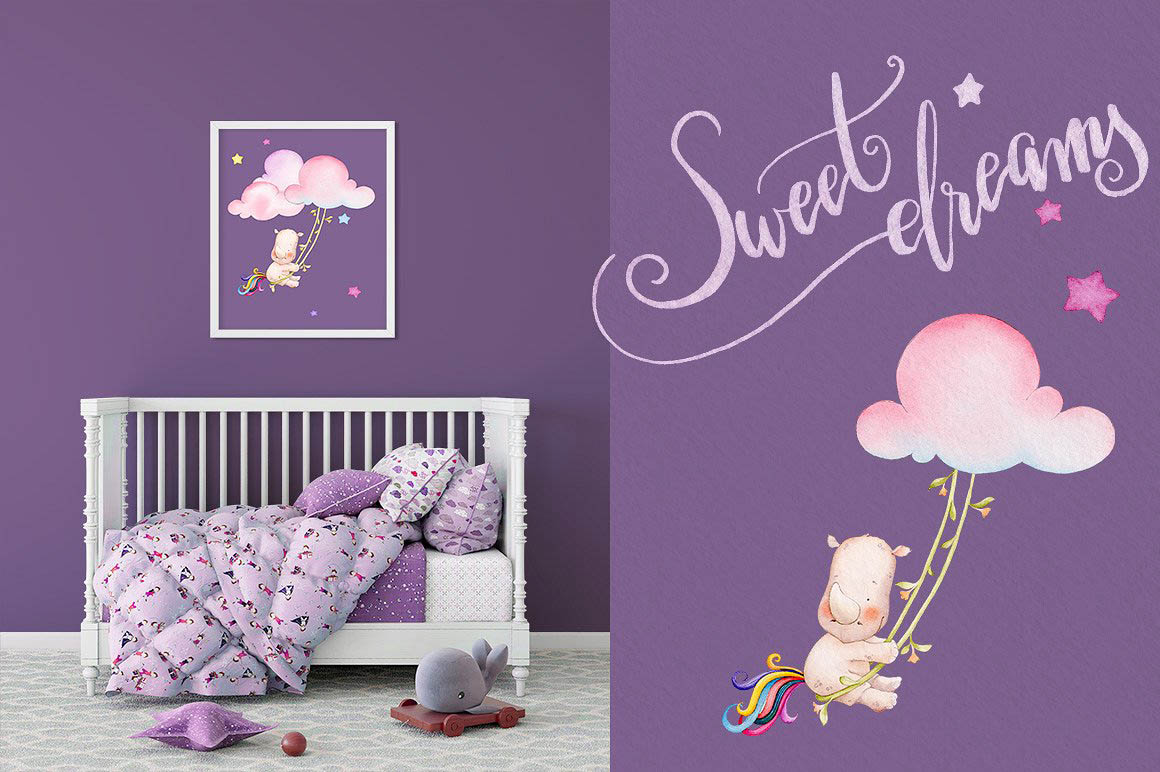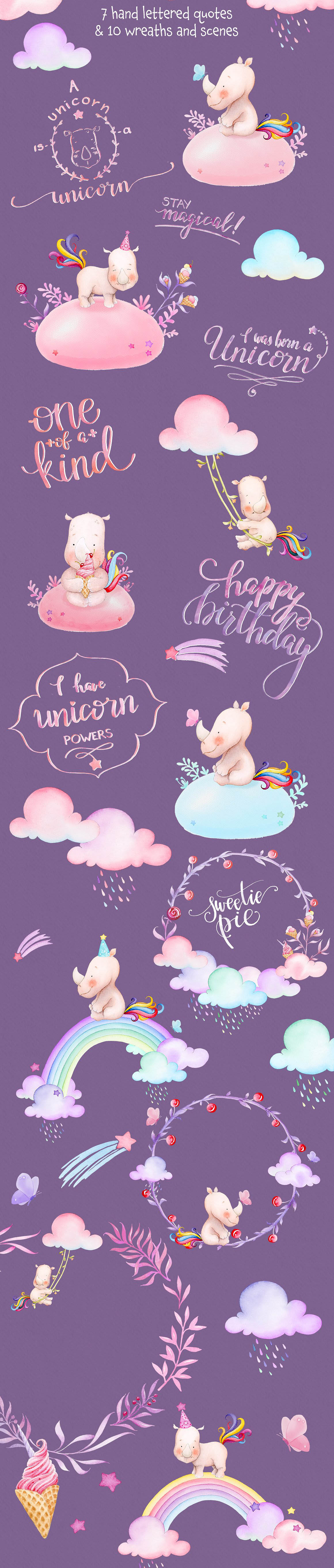 - 41 separate elements, including : unicorns, clouds, rainbows, butterflies, ice cream cones, magical lollipop flowers, ice cream plant, branches and leaves, candy liana, stars and shooting stars, birthday hats and a magic hill (it is actually candy!)