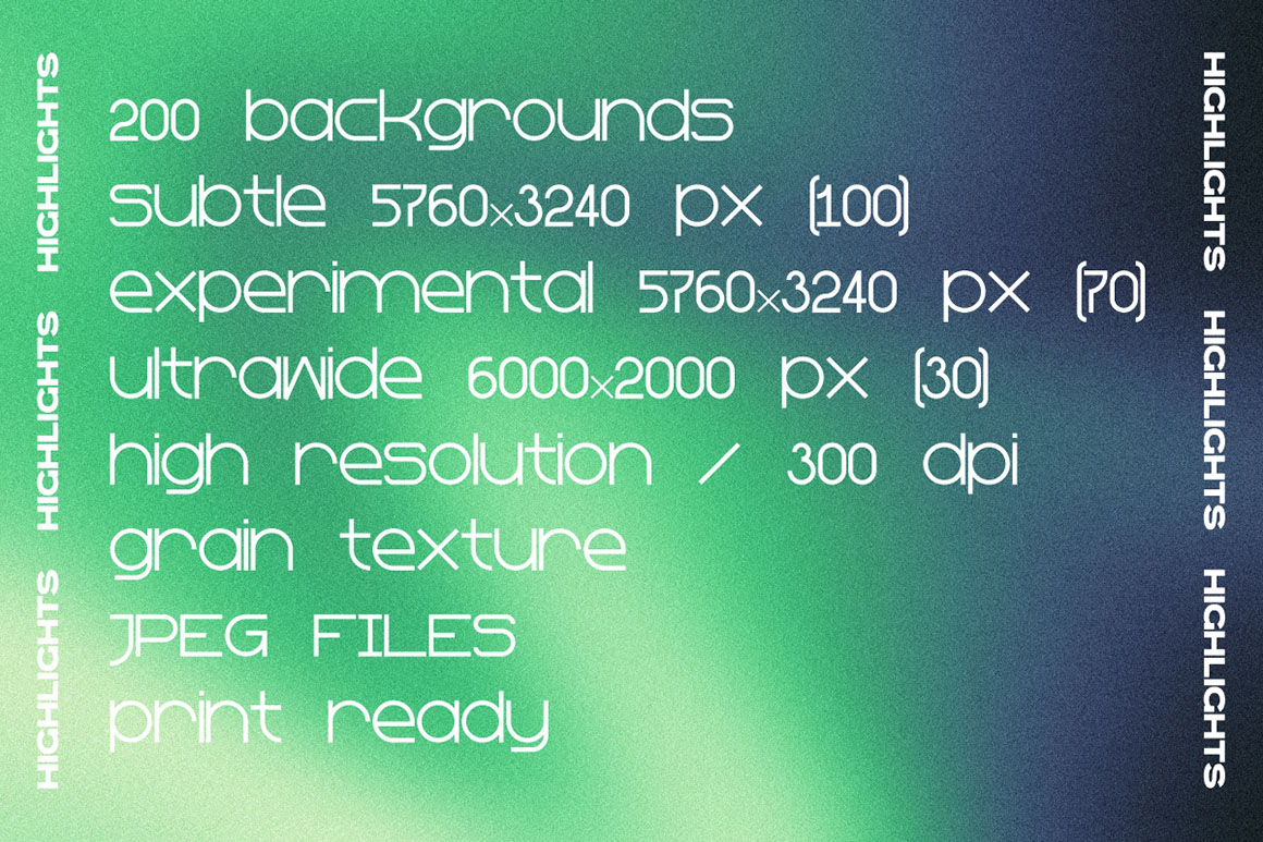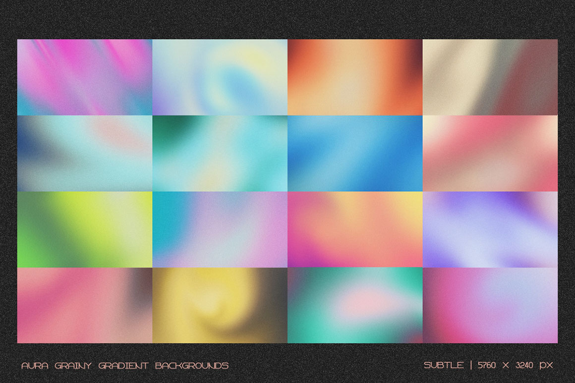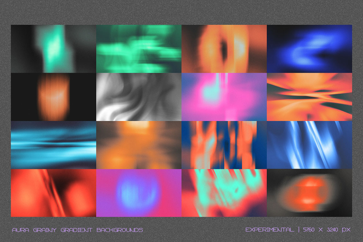 - Collection of 200 grainy gradient backgrounds or overlay effects