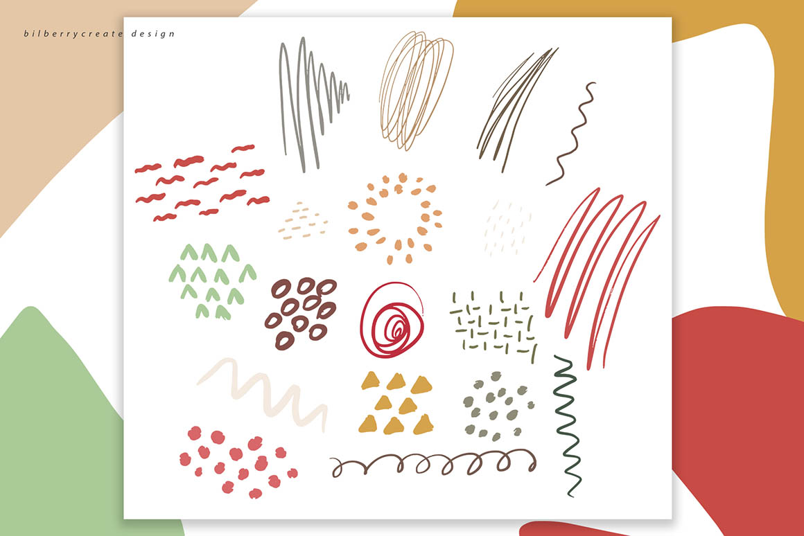 All these cool handdrawn graphics from BilberryCreate are ready for print or online use! MAIN USAGE: flyers, posters, greeting cards, branding, packaging, phone cases, bags and totes, wall art, fabrics, t-shirts, website backgrounds. Actually any place you love! Enjoy 😉