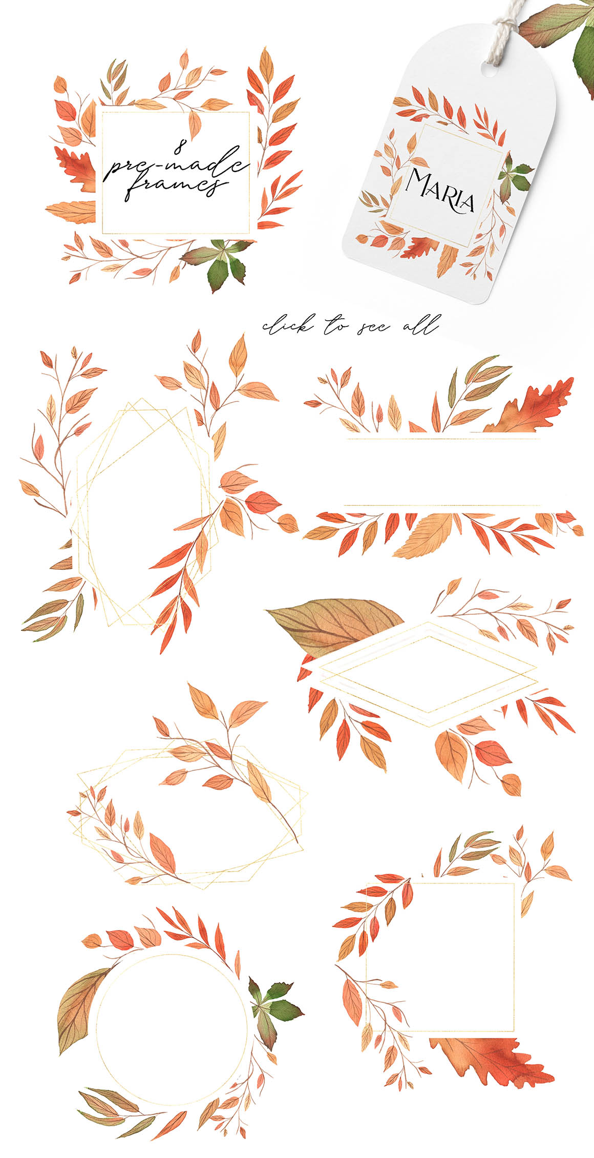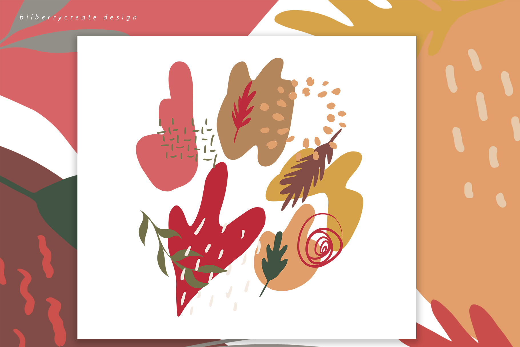 I am thrilled to introduce my brand new product – Autumn Colored . The collection has more than 110 elements, it is perfectly suitable for custom design for your customers or DIY your own stuff just for fun! Autumn Colored design set filled with individual design elements, abstract forms, botanical leaves, cards 1240*1754, abstract elements, seamless pattern, compositions, cards for instagram ready to use:) This product was created to help you make your digital images even more beautiful and unique. This pack can be used to create anything as you wish, logos invitation cards, make scrapbooking, wedding cards, birthday cards, home decor, packaging holiday gifts, party decorations, print on fabrics and so much more.