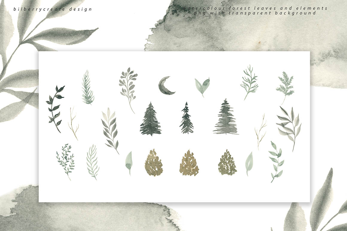 - 22 watercolour forest elements (png with transparent background)