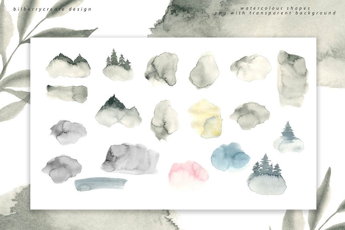 - 24 watercolour shapes (png with transparent background)