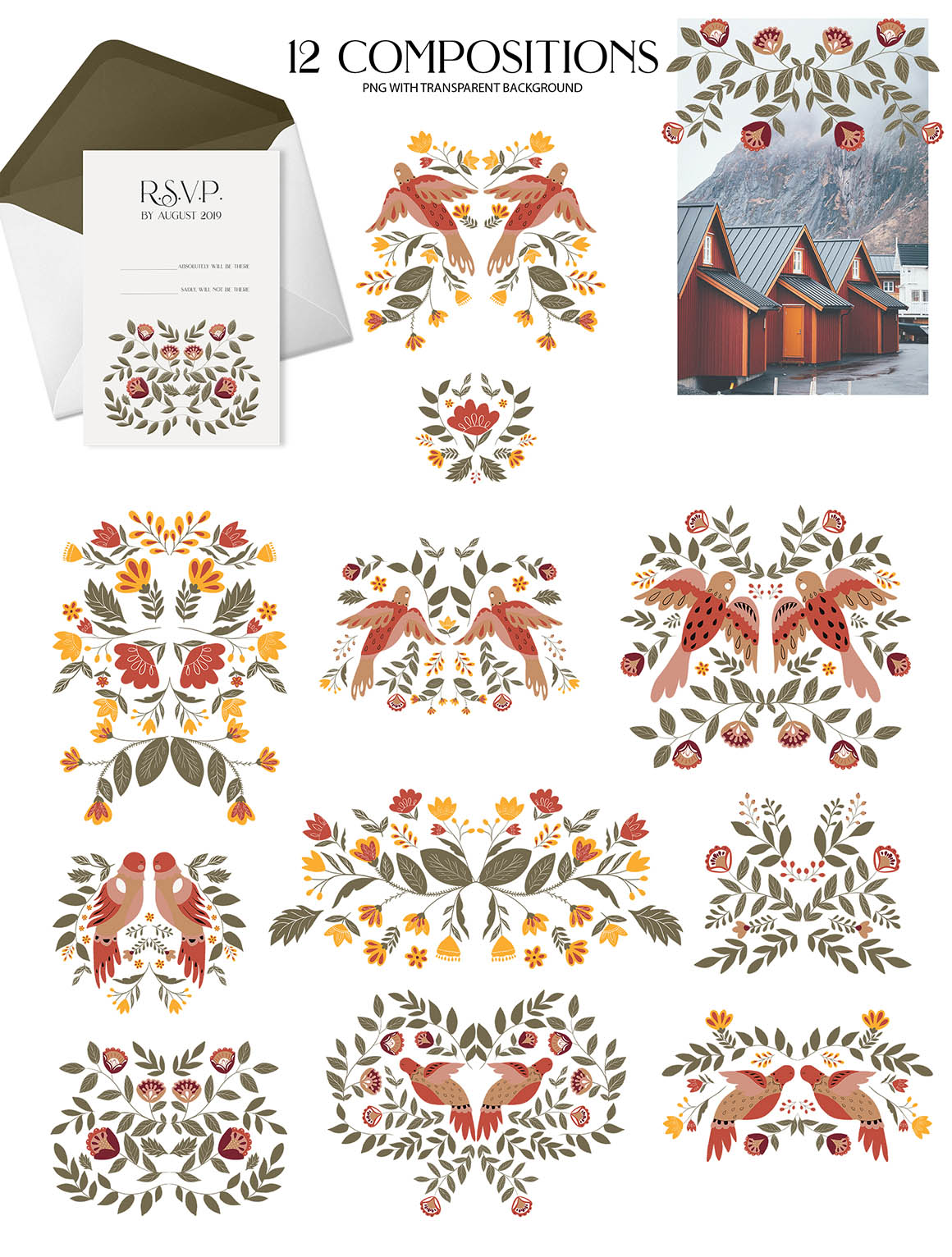 - 12 compositions ( png with transparent background)
