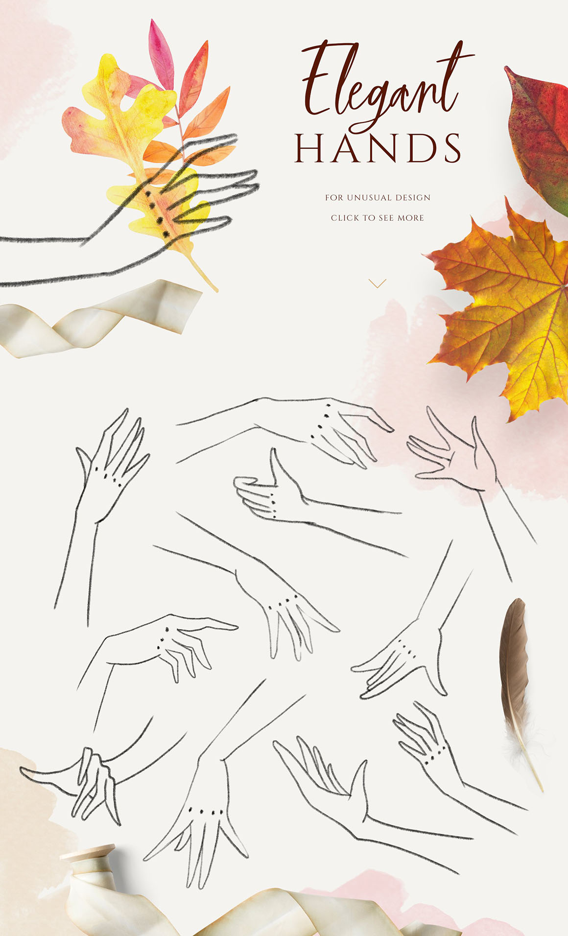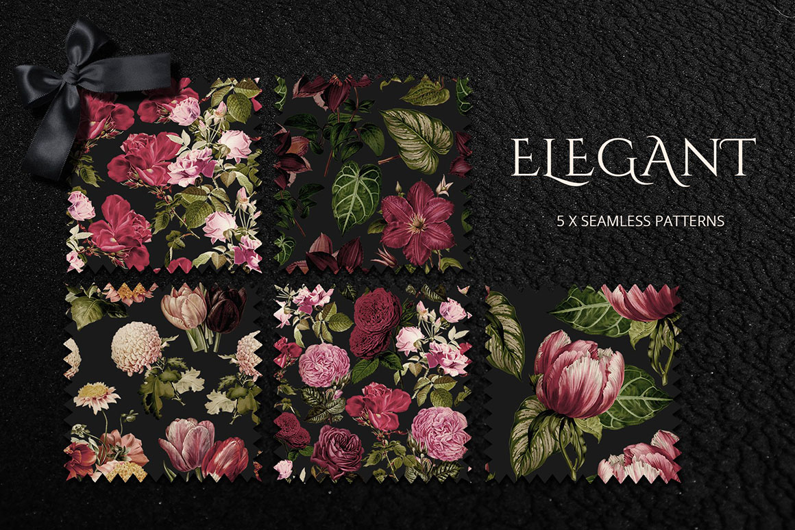 Deep colors and elegant lines add chic in your design. Use this set to create invitations, design blogs, websites or logo etc. I recommend use dark black or deep tones background. Perfect for art prints, wedding invitations, posters, packaging, brand design, social media, collages, web design, scrapbooking and more. Also I prepared 5 seamless patterns for your design ideas and 5 pre-made compositions.