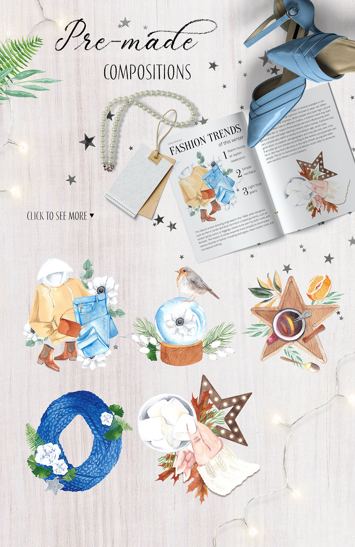 Are you love winter? You will find inside a great illustrations of fashion outfits, bird, cozy homely things and part of greenery winter flora. Winter mood — elegant high quality lifestyle flatlay collection, also you can find patterns, compositions and delicate contour graphic. Perfect for invitations, social media projects, moodboards, to do lists, modern or vintage wedding suite and stationery, bridal shower decoration, branding identity, greeting cards, posters, wall art, calendars, surface patterns, scrapbooking, gift wrapping paper, textile design, cosmetic, advertising, packaging, cases, logos, quotes, blogs, web, banners and so on.