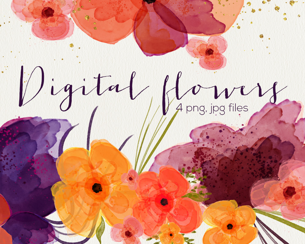 Watercolor abstract flowers – Ideal for invitations, handmade craft items, weddings invitations,scrap booking, printed paper items and more.