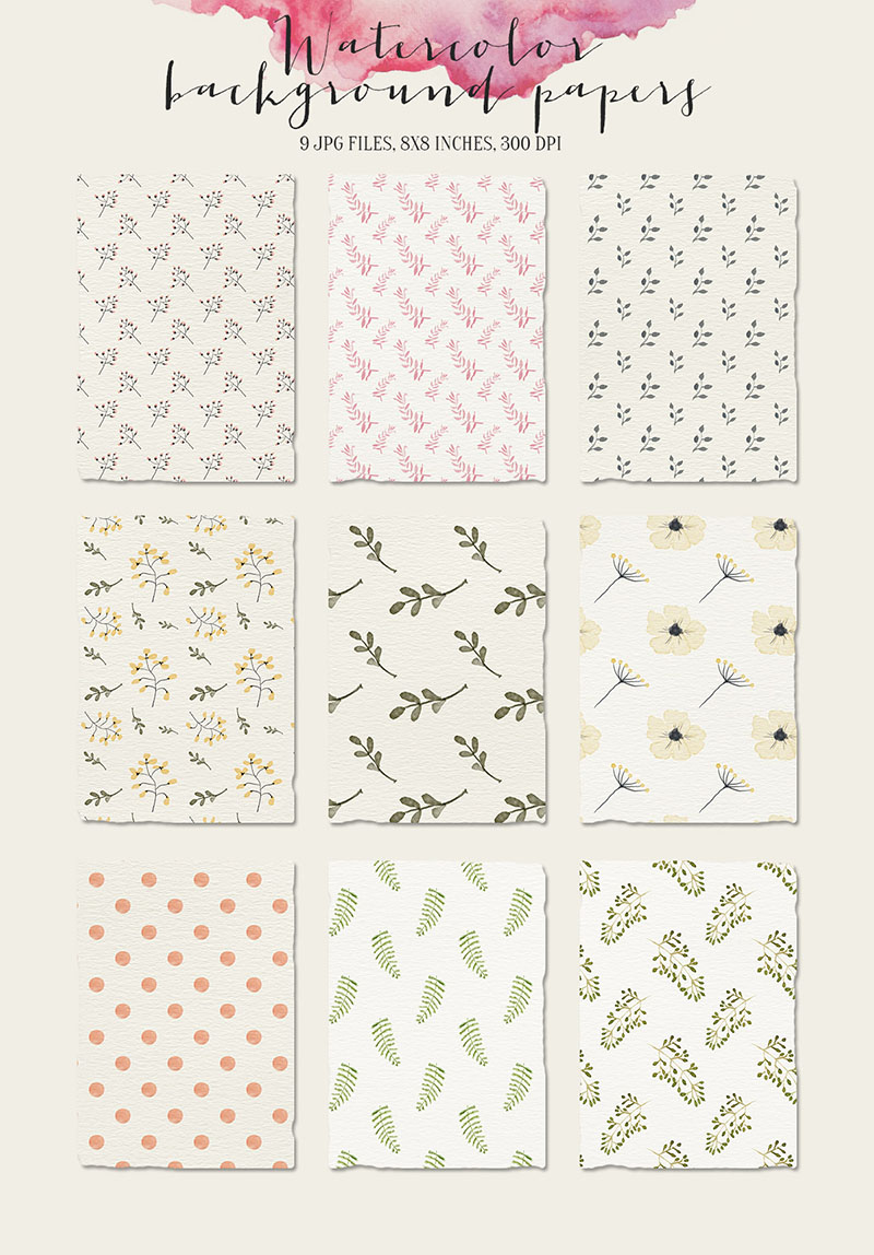 Watercolor background pattern papers – Ideal for blog, invitations, handmade craft items, weddings invitations,scrap booking, printed paper items and more.