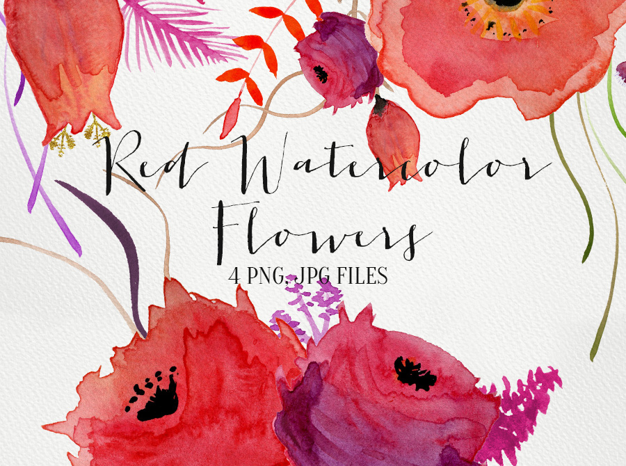 5. Red Watercolor Flowers by Webvilla
