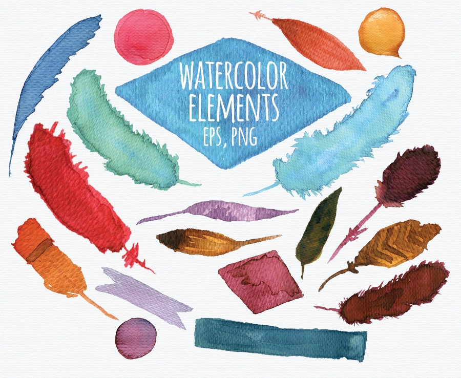 7. Feathers – Watercolor elements by Webvilla
