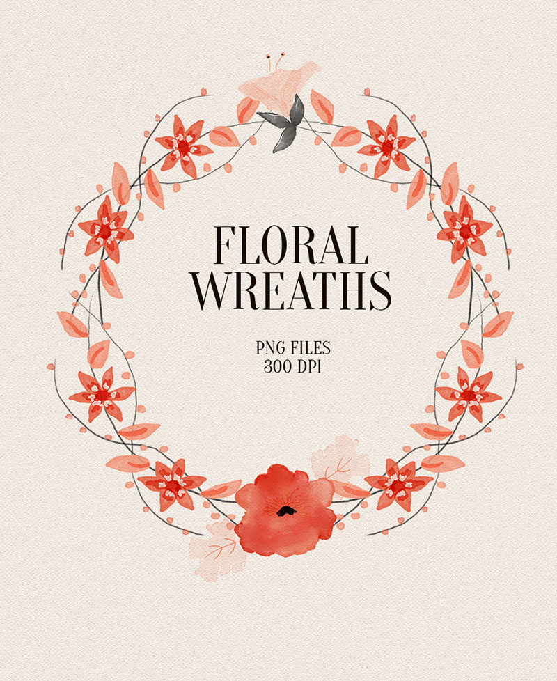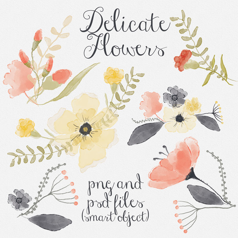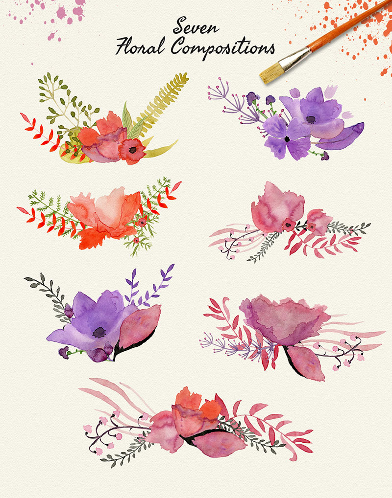All these beautiful floral images are from talented designer Beata or Webvilla from Poland. You can mix, cut, color change – just play with all these floral watercolor images and create amazing and unique designs! 😉