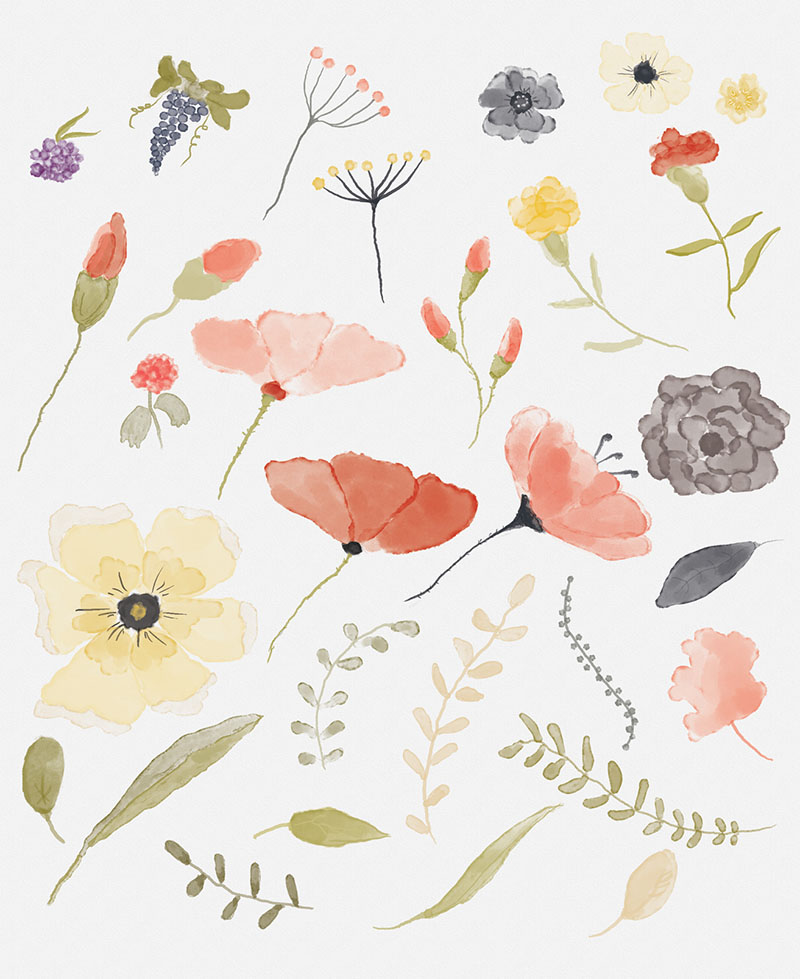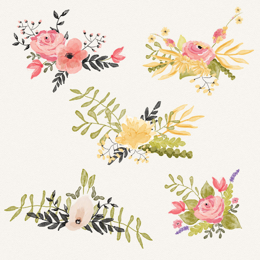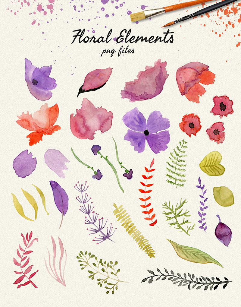 4. Watercolor floral elements by Webvilla
