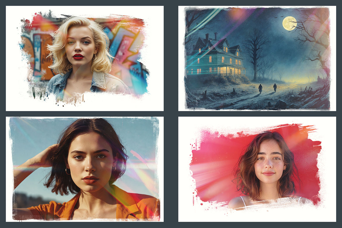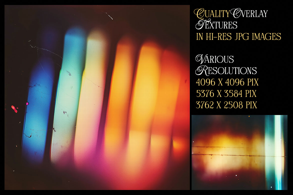 - Great effects for your photos or illustrations – very easy to work with these overlay textures in any graphic app supporting layers and working with images!