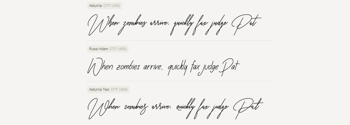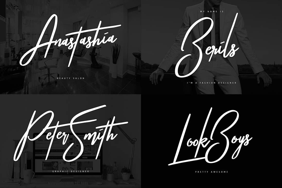 Give your designs an authentic handcrafted feel. “Asturria Signature” is perfectly suited to signature, stationery, logo, typography quotes, magazine or book cover, website header, clothing, branding, packaging design and more. Included Stylistic Alternates & Ligatures.