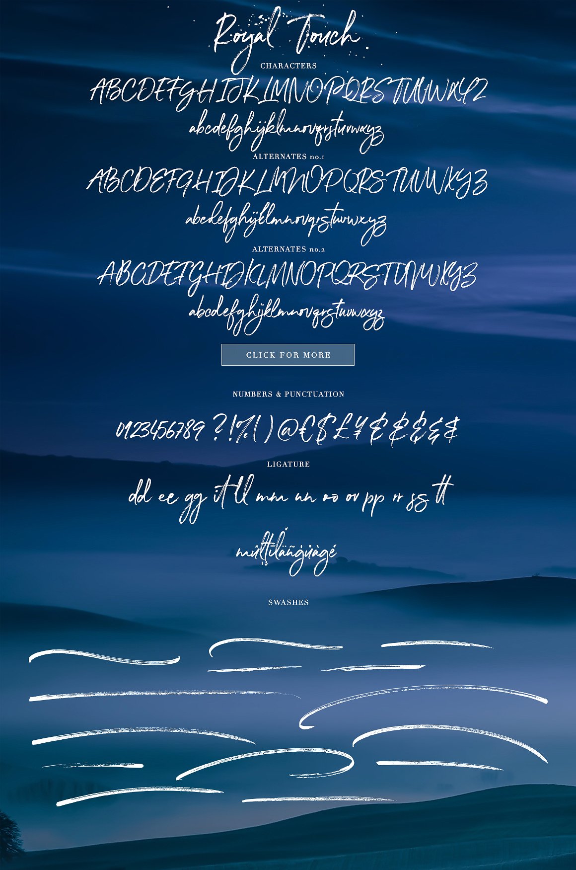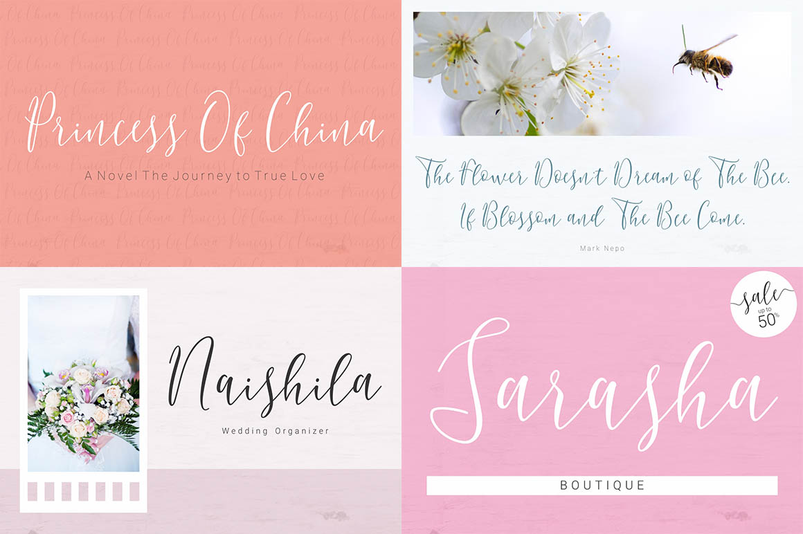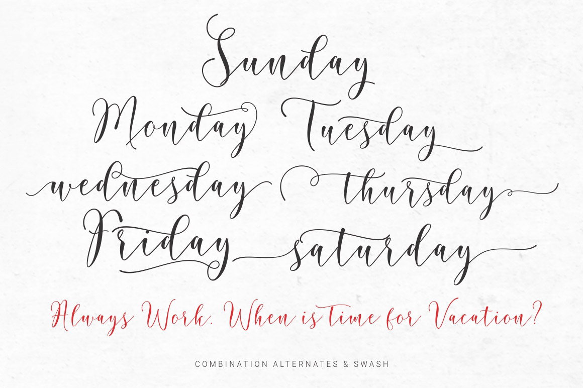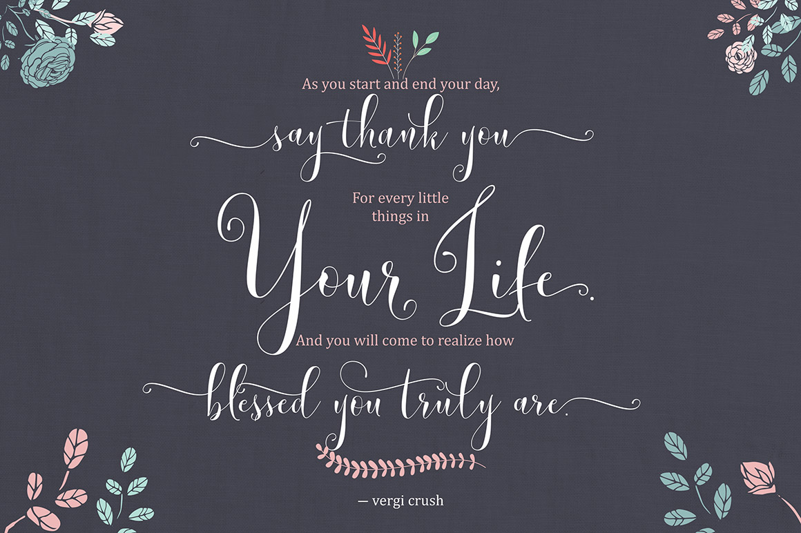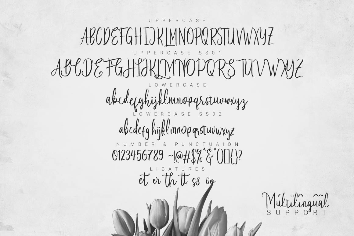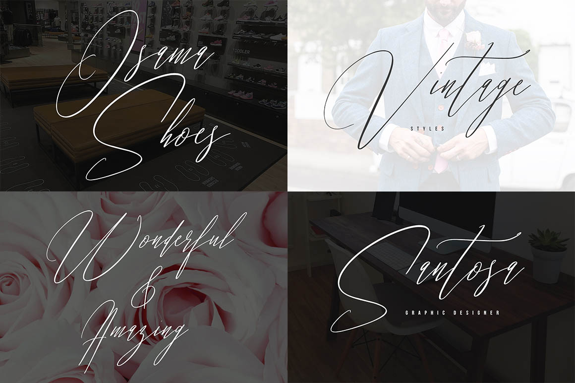 This is a new font script with a unique and thin style. Not only unique, the font is made in detail also has an elegant style, sweet, simple and firm character. With a unique style that dancing, this font can make your design more alive. When you use this font sometimes you do not need to use other fonts pairing, this font can be used in single, but still as you wish! If you are curious, please try it! With a style like this, this font will be suitable in use for logo’s, branding projects, homeware designs, product packaging, mugs, quotes, posters, shopping bags, logo’s, t-shirts, book covers, name card, invitation cards, greeting cards, and all your other lovely projects. You can use this font for your job very easily. Because there are many features in it. Contains the complete set of lower and uppercase letters, punctuation, numbers, web fonts, and multilingual support. This font also includes several ligatures and alternative style Stylistic Set For those of you who have software that is capable of working OpenType (Corel Draw / Photoshop / Illustrator / InDesign).
