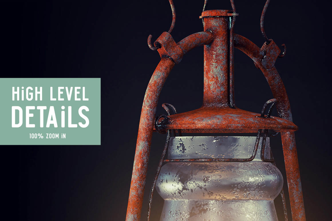 Hi! Presenting a set of three PSD files with vintage rusty oil lamp and wooden frame. It’s a 3d rendered images, two of them are a mockups, with ability to replace a picture in frame. Third one is just a render of old oil lamp on dark background (lamp is cut out from background).