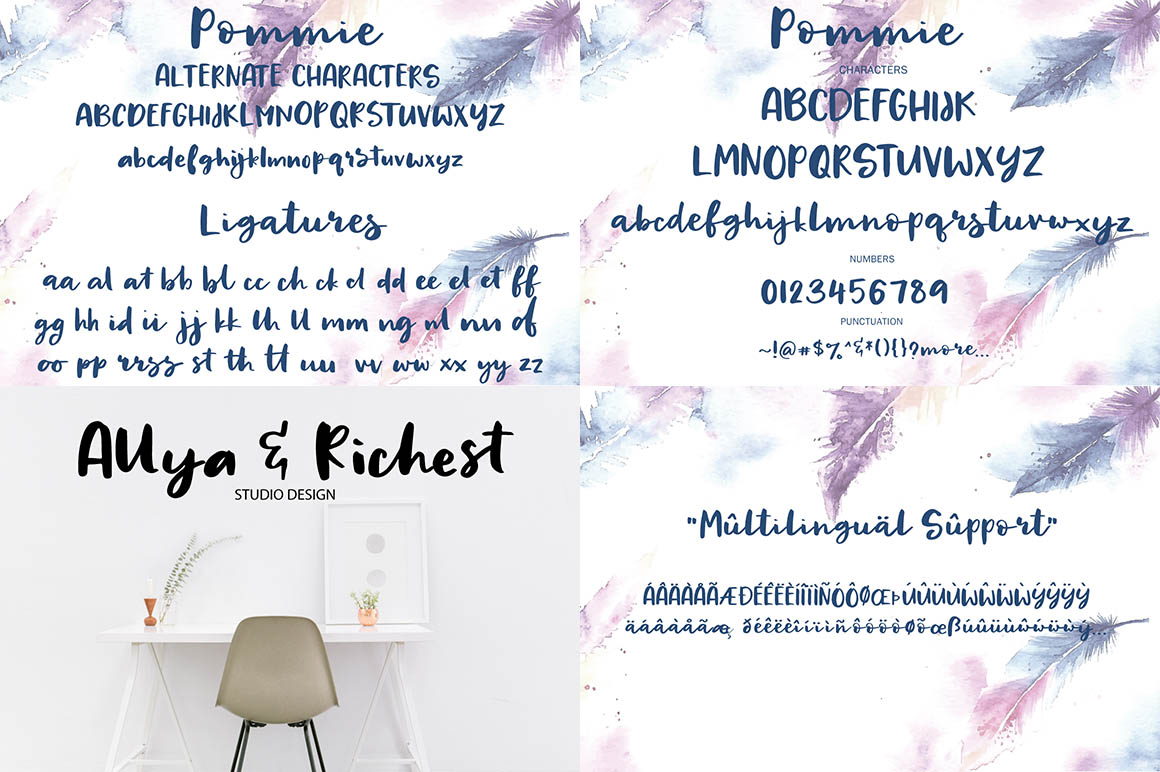 Pommie is a Modern chic script font. Every single letter has been creative carefully This font is a little romantic script designed for making your set of invitations, quotes, blog posts, and more completely beautiful.