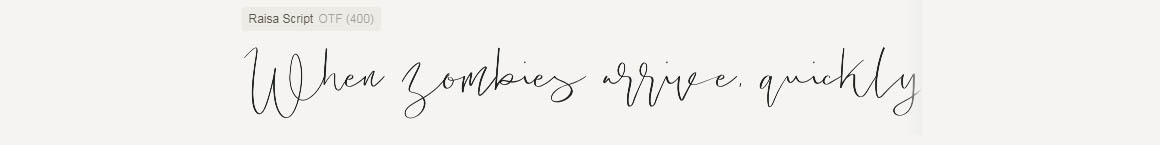 Give your designs an authentic handcrafted feel. “Raisa Script” is perfectly suited to signature, stationery, logo, typography quotes, magazine or book cover, website header, clothing, branding, packaging design and more.