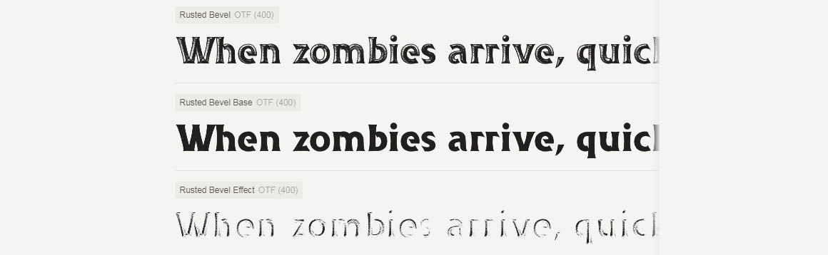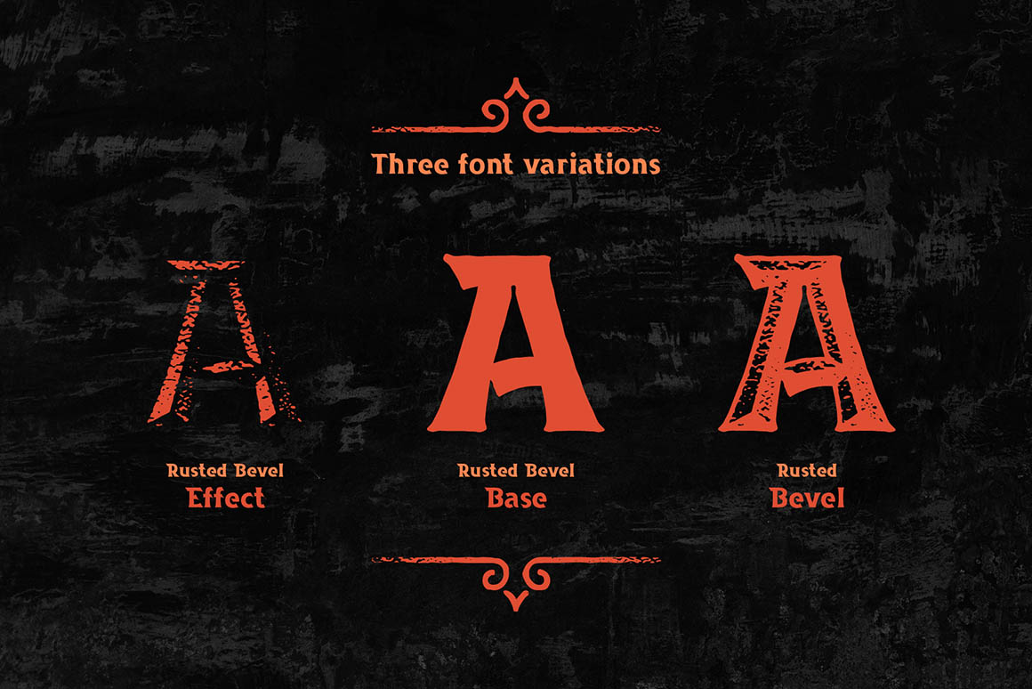 Hi! Introducing a vintage rough font set “Rusted Bevel”. It includes three font files for combining and easy recoloring a textured bevel effect. Also, as a bonus, you will get a lettering poster with ornate (3rd screenshot) in vector eps format. All available characters and supported languages you can see on the 4th screenshot.