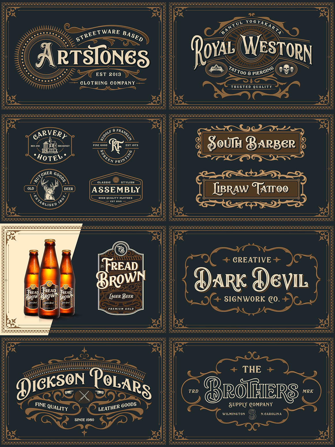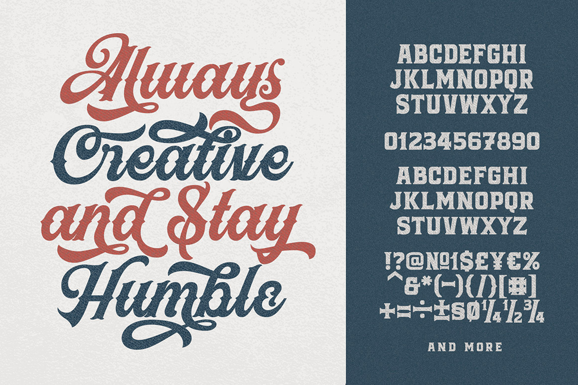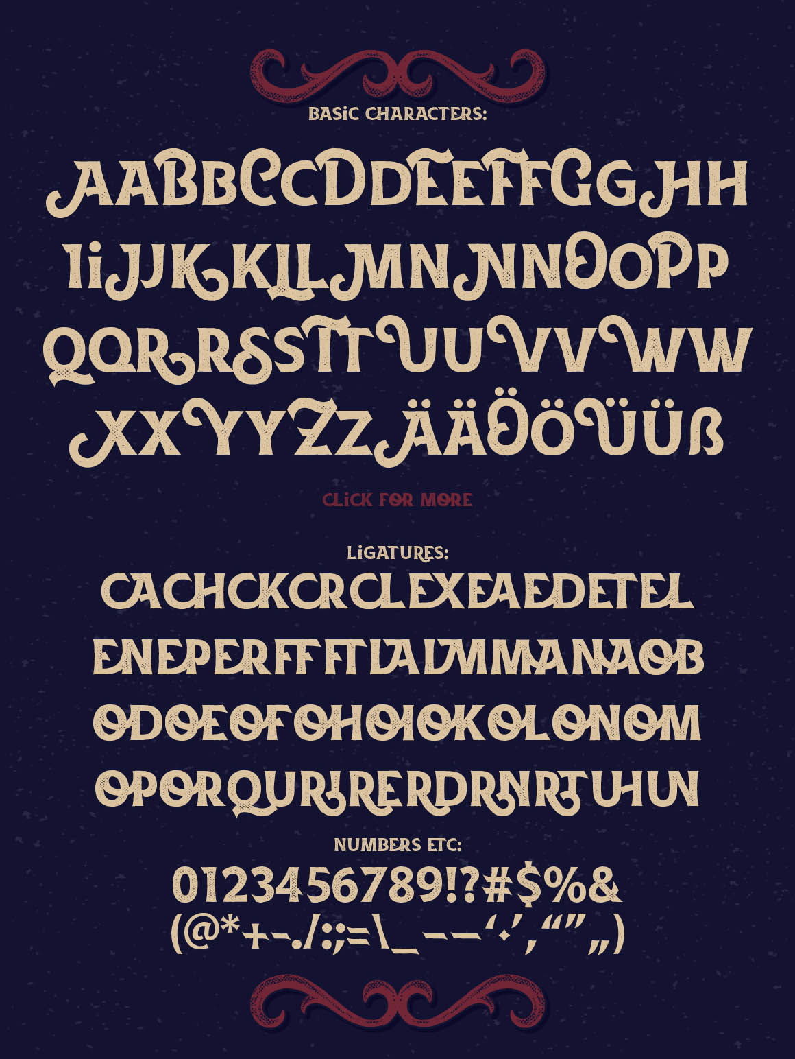 Hi! Presenting a vintage font set named La Belman. It’s a vintage typeface with rough textured effect. It also includes a clean version of this font. Lots of ligatures will help you to make your lettering more unique (all characters you can see on the 3rd screenshot). As a bonus you will get a vector template with ornate from title screenshot.